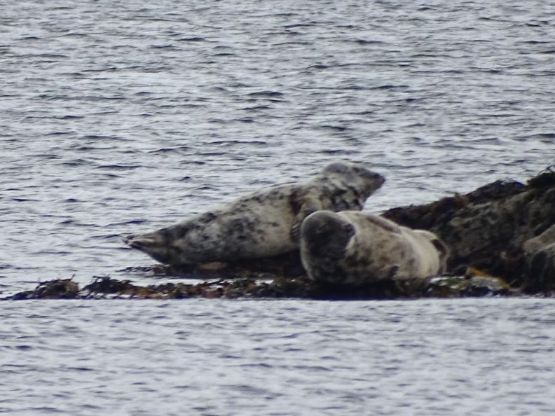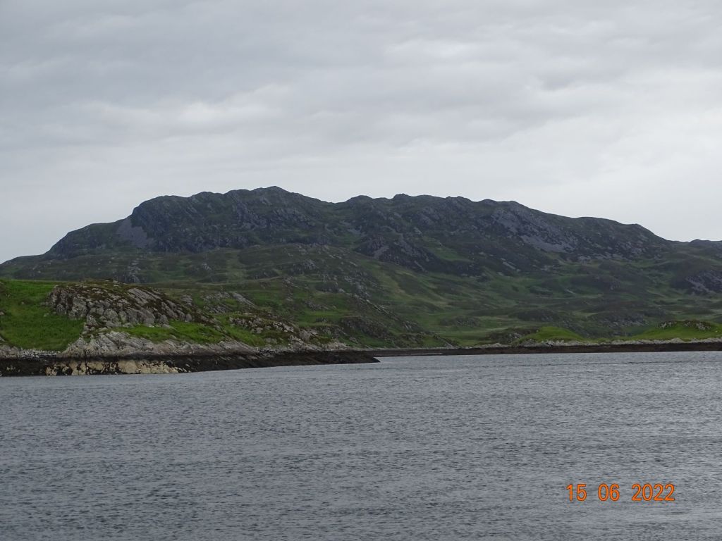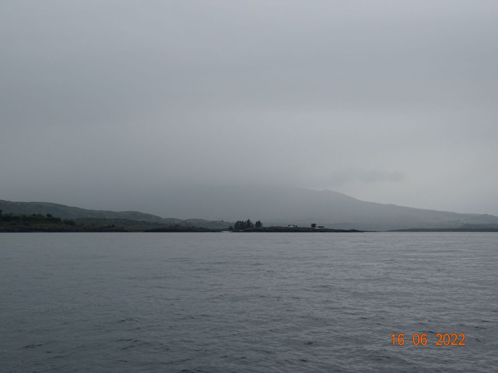 Nous repartons vers le Sud à la découverte d’un nouveau loch. La navigation dans le « Sound of Mull » est tranquille quand le vent contre-courant ne s’y engouffre pas. Des ferrys n’arrêtent pas de faire la navette entre l’île et le continent. Il fait froid et humide ce 22 juin, nous arrivons transis au loch Spelve au Sud de Mull et comme nous avons fait un peu de moteur pour rentrer, l’eau est bien chaude. Un petit coup de chauffage dans le bateau, et nous profitons d’une bonne douche bien chaude pour nous réchauffer. Nous égayons un peu notre soirée avec un bon repas de coquilles Saint-Jacques achetées à Tobermory. On se console comme on peut de ce temps bien gris. Au fond du loch où nous apercevons de temps en temps un museau de phoque, une bande d’oies se promène en cancanant.