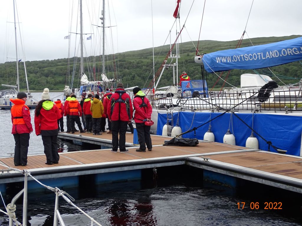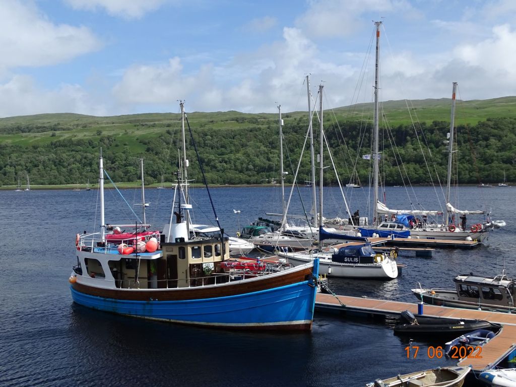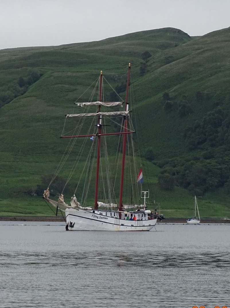 La journée suivante étant prévue très pluvieuse encore, nous décidons de faire une pause et d’en profiter pour faire un peu d’entretien. Il n’y a pas grand-chose non plus à Loch Aline, un terminal de ferry, un « Community Shop », un restaurant, une marina accueillante et une petite mine de silice avec son terminal de cargo qui transporte le matériau. Deux beaux bateaux de l’association OYT Scotland sont amarrés à la marina. Cette association caritative remet dans le droit chemin, par la pratique de la voile, des jeunes gens en déroute. Ils mettent un peu d’ambiance sur le ponton. Depuis que nous progressons plus au cœur de l’Ecosse, tout commence à avoir un prix, les douches jusqu’alors gratuites deviennent payantes 1£ voire 2 £, 50 pences pour quelques minutes de sèche-cheveux… A Loch Aline j’ai épuisé toutes mes livres à tenter de faire sécher du linge dans leur sécheuse et ai fini par transformer le bateau en bateau italien, à l’intérieur car dehors il pleut !