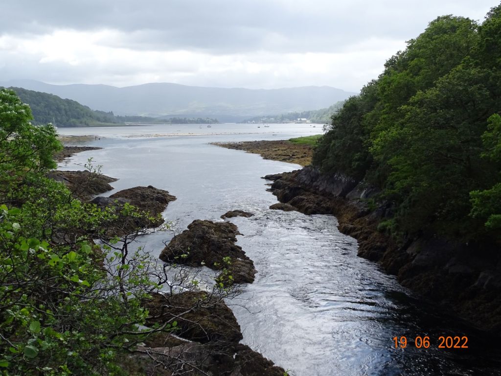 Le 18 juin il est annoncé maximum 20 nœuds de vent, nous quittons le loch pour continuer notre route. A peine franchi la passe, des rafales à 30 nœuds nous tombent dessus et un fort clapot s’est levé dans le « Sound of Mull ». Nous avons le vent dans le nez, la navigation risque de s’éterniser et d’être pénible ; nous décidons donc de renoncer et retournons nous abriter au mouillage au fond du loch. Le lendemain l’abri du loch nous trompe encore et même scénario, retour au mouillage ! Pourquoi s’infliger des moments pénibles alors que nous pouvons attendre tranquillement que ça se calme ! Nous avons renoncé à monter plus au Nord, la météo étant trop changeante et aléatoire et nous n’avons pas envie de faire du forcing au risque de casser quelque chose. Nous avons rendez-vous avec Christine le 25 à Oban, pour ensuite nous diriger vers le canal de Calédonie. Nous débarquons au fond du Loch Aline à un petit quai qui s’avèrera faire partie d’un domaine hôtelier dont la demeure principale est un beau château abrité au fond de la baie. Deux rivières, enjambées par de jolis ponts de pierre, se jettent dans le loch. Nous profitons d’un après-midi ensoleillé, ils ne sont pas si nombreux ! Une belle promenade champêtre à la rencontre des moutons et de la faune locale.