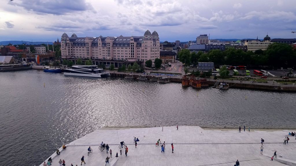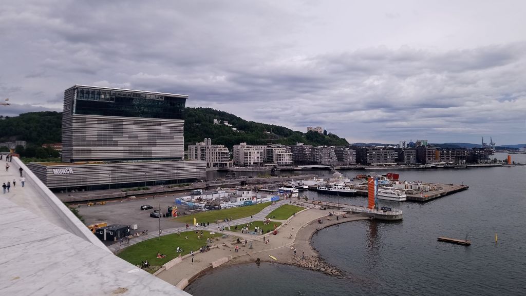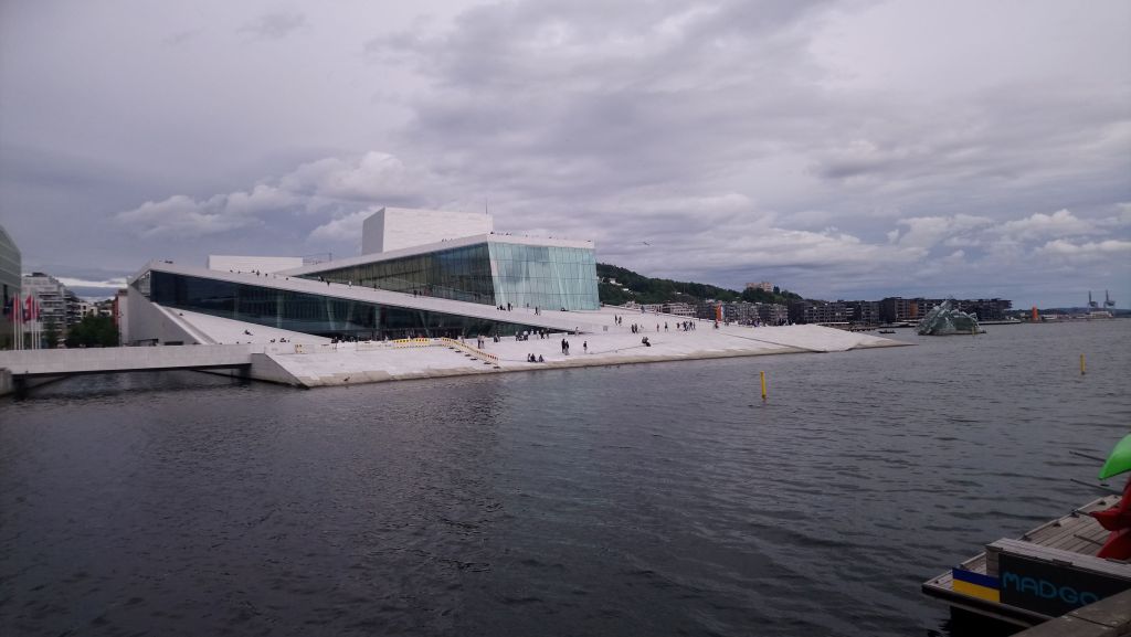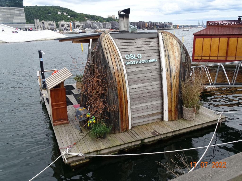 Le 17 juillet après une journée d’entretien à Kristiansand, nous partons vers Oslo en voiture de location. La route est longue, elle traverse des forêts de pin à n’en plus finir. Nous retrouvons Silvia et Jean-Marc en milieu de journée à Oslo. La capitale de la Norvège est une ville résolument moderne. Les bâtiments anciens parfaitement rénovés côtoient de jolis quartiers modernes avec des immeubles d’habitation où l’on aurait envie de vivre : des balcons fleuris, de larges ouvertures et une belle architecture assez avant-gardiste. La ville se situe au fond d’un fjord, l’eau est présente partout, ce qui ajoute à son charme. Nous visitons le Musée Fram construit autour du bateau d’Amundsen, qui l’a conduit le premier vers le pôle Sud, entre autres expéditions scientifiques ; puis le musée dédié aux expéditions du Kon-Tiki. Nous apprécions l’architecture ultra moderne de l’Opéra, marchons sur les quais, admirons les petites maisons flottantes qui abritent des saunas… Le lendemain nous regagnons Free Vikings avec nos amis, non sans être allés voir de près l’énorme tremplin de ski de Holmenkollen sur les hauteurs d’Oslo.