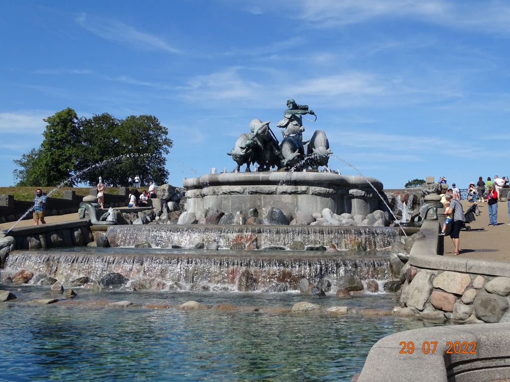 En début d’après-midi le 29 juillet, après avoir traversé des champs d’éoliennes, aperçu au loin le grand pont qui relie la Suède et le Danemark, nous arrivons à Copenhague. Nous avons la chance de trouver une place à la petite marina de Langelinie. Ce petit port de plaisance tout rond avec ses bateaux amarrés en épis autour, est situé à 100 mètres de La Petite Sirène, est très proche du centre-ville, dans un endroit calme. Les places visiteurs sont celles laissées par les résidents partis naviguer. Nous devrons d’ailleurs changer de place au cours de notre séjour pour laisser un résident rentrer.