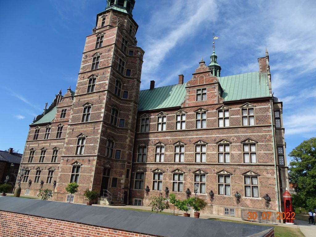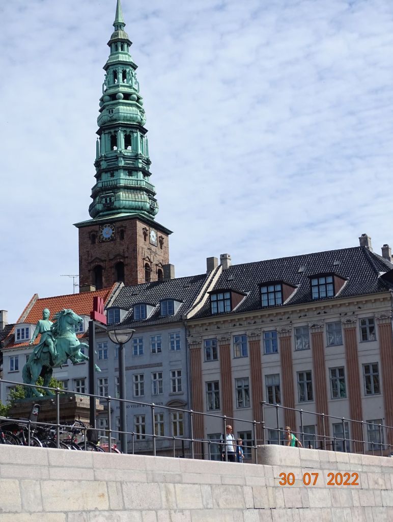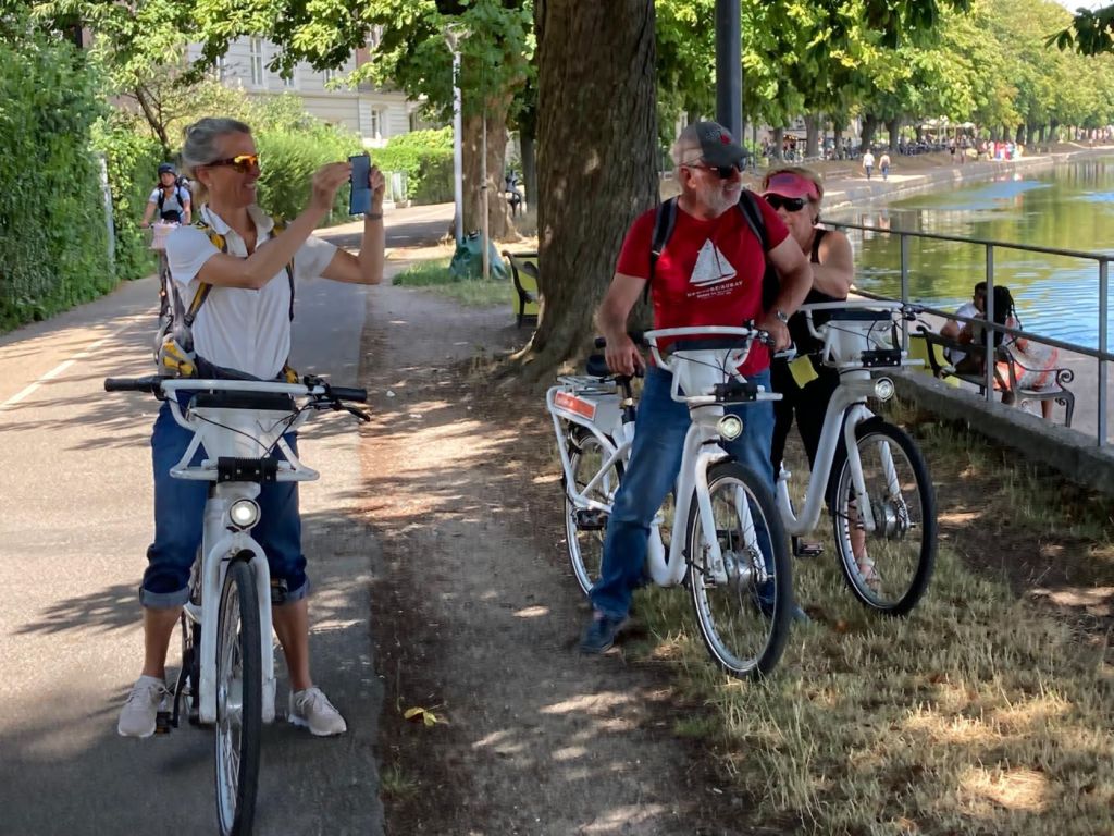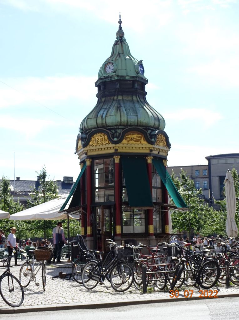 Puis nous décidons de louer des vélos. Copenhague est la ville des bicyclettes, tout le monde circule en deux roues. Après de nombreuses péripéties et minutes d’énervement nous parvenons à charger une application sur chacun de nos téléphones, pour louer et gérer chacun la location d’un vélo. Le Danemark est un pays où on ne peut rien faire sans téléphone et internet ! Nous parcourons à vélo cette magnifique ville, les deux jours de notre séjour. Nous découvrons ainsi : l’ancien château des rois du Danemark Rosenborg qui abrite les joyaux de la couronne, de beaux quartiers résidentiels très aérés, verdoyant, le marché de Torvehallerne ouvert tous les jours où on trouve des légumes frais ainsi que de bons bouchers, charcutiers, poissonniers, traiteurs et autres ; l’usine ultramoderne d’incinération Copenhill où sont aménagés une piste de ski artificielle (le seul endroit où l’on peut skier au Danemark) et un immense mur d’escalade ; les quartiers marécageux aux bords des canaux limitrophe avec leurs maison insolites ; sans parler de tous les châteaux et constructions remarquables…