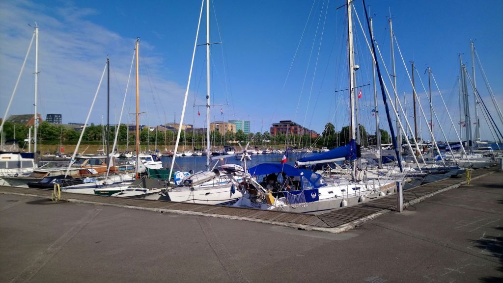 Ce bras de mer que nous traversons entre le Sud de la Norvège et le Danemark s’appelle le Skagerrak, il est toujours très venté : le vent d’Ouest qui s’y engouffre est amplifié par les deux côtes. A la pointe de Skagen au Nord du Danemark, on entre dans le Kattegat : mer située entre la Suède à l’Est et le Danemark à l’Ouest. C’est une mer sans marée avec des fonds qui n’excèdent pas 30 mètres, de nombreuses îles plates et de nombreux bancs de sables. Nous arrivons assez vite au matin, dans le Kattegat, mais nous y passons la moitié de la journée à remonter jusqu’à Frederikshavn situé une douzaine de milles plus au Sud, car le vent refuse de nous accompagner et nous l’avons bientôt en plein dans le nez. Le port de plaisance de Frederikshavn est situé un peu à l’écart de l’important port commercial et terminal de ferry.