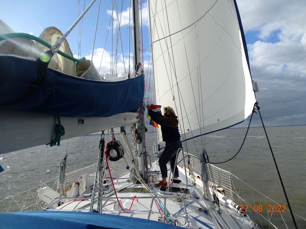 Henri et Isabelle débarquent donc dimanche 28 août pour rejoindre Amsterdam en train, et s’assurer de bien prendre leur vol de retour. Nous sommes bien tristes de les quitter si vite. Merci les amis de ces bons moments avec vous, trop courts, et d’avoir fait l’effort de venir nous voir malgré tout, ce n’est que partie remise ! Nous repartons l’après-midi même avec le courant et contre le vent, pour remonter les 25 milles de l’embouchure de l’Eems et nous arrêter à nouveau à Borkum, afin d’être proches de la sortie pour repartir par la mer vers l’Ouest…
