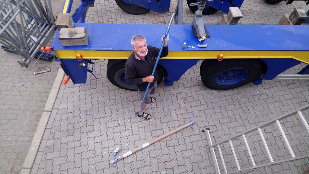 Le lendemain il faut faire toutes les démarches avant de retrouver Free Vikings. Le démontage de l’arbre se révèle plus ardu que prévu, tout est évidement bien soudé après plusieurs années dans l’eau et l’arbre ne se sort que de l’intérieur, il faut donc soulever le moteur ! Une journée encore chaude et laborieuse et toujours dans l’attente ! Vous connaissez ma patience ! Heureusement l’équipe du chantier nous aide bien, ils nous trouvent une chambre pour les deux prochaines nuits à Laboe dans un charmant hôtel près de la plage, d’où nous admirons de beaux couchers de soleil. Nous louons des vélos à un couple de personnes âgées qui ont installé un hangar dans leur jardin et louent aux vacanciers. Ils sont charmants, nous correspondons par gestes et grâce à Google traduction car ils parlent très peu anglais et nos notions d’allemand sont bien lointaines, mais c’est sympa !