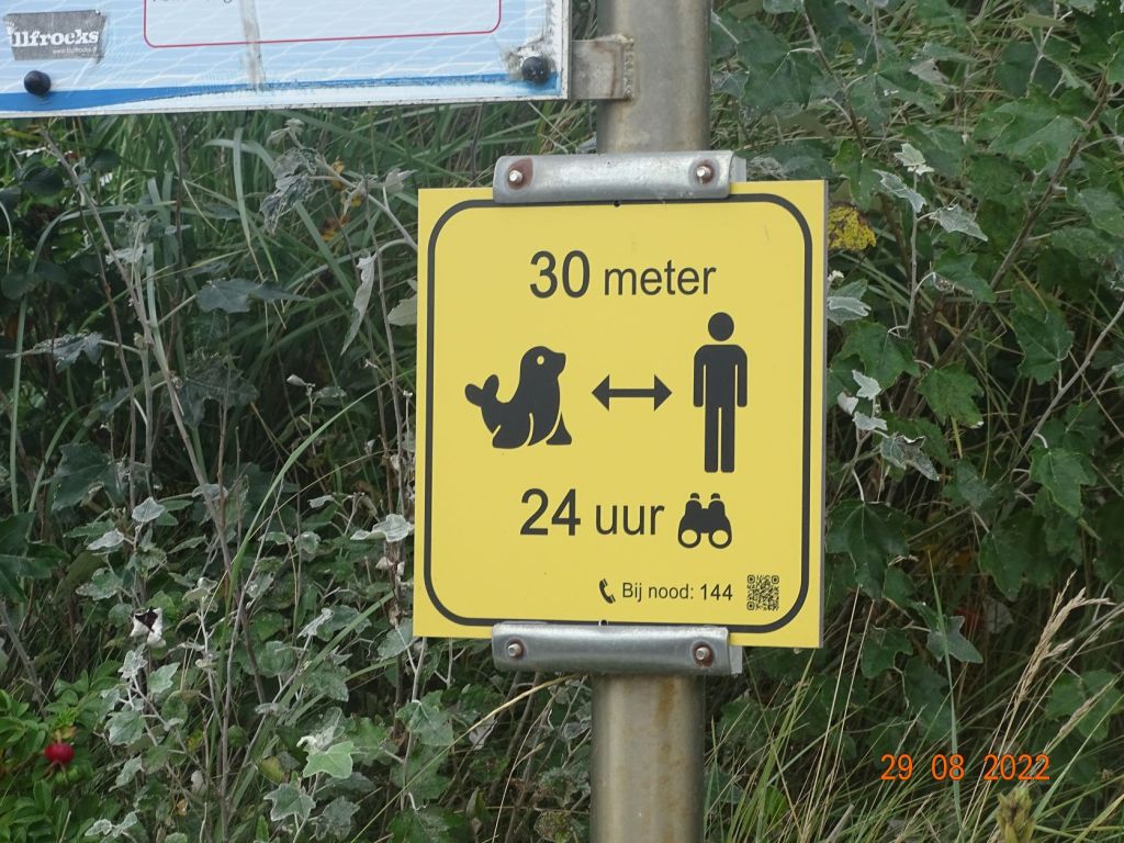 . Les ports de plaisances sont entièrement réservés aux bateaux de passages et vraisemblablement en service seulement l’été. La météo hivernale est rude par ici. Le port d’Oost-Vlieland est très vivant, les anciens bateaux embarquent des équipages très jeunes de stagiaires qui mettent de l’animation. Le vent souffle encore de secteurs Est pendant quelques jours, nous souhaitons en profiter et regrettons de pas pouvoir nous y attarder. Les phoques sont aussi présents ici comme en atteste une pancarte indiquant qu’il est interdit de s’en approcher à moins de 30 mètres. Nous voyons effectivement en navigant des petites têtes noires qui sortent de l’eau par moment.