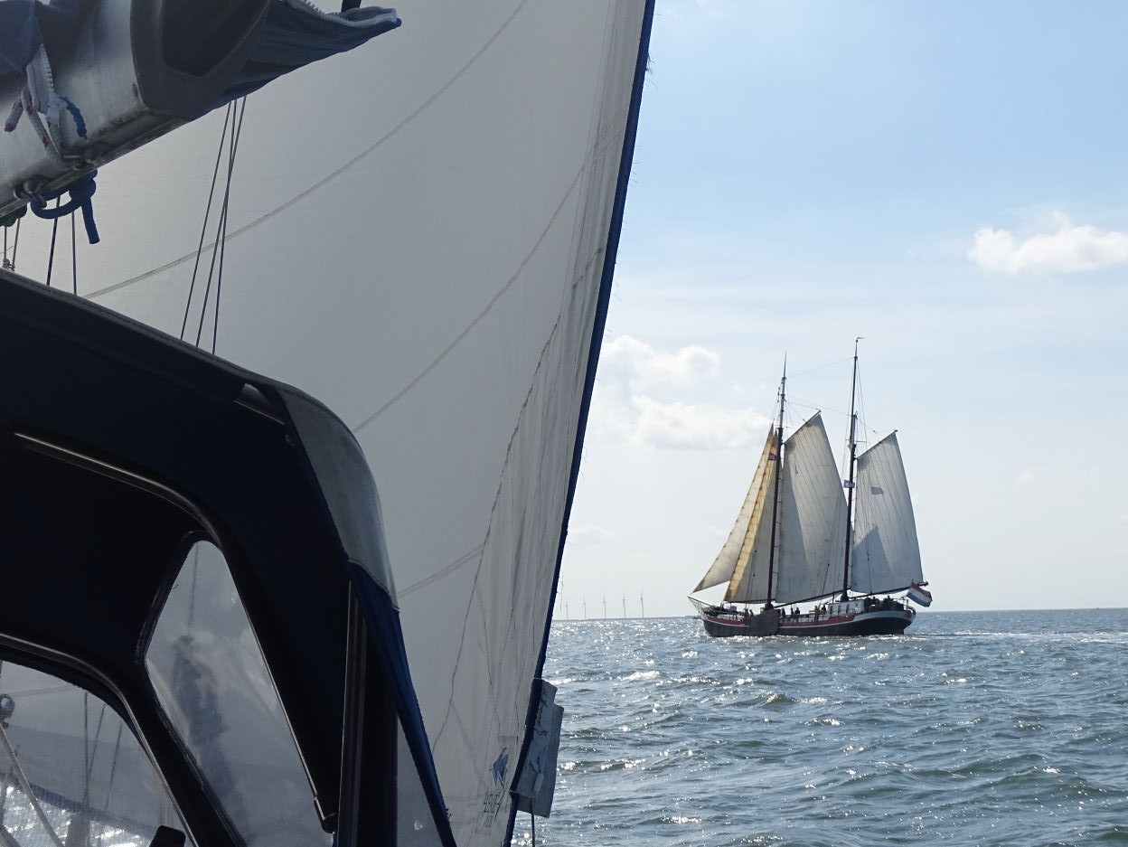 Le lendemain nous repartons vers le Sud-Sud-Ouest cette fois. Nous empruntons le chenal de l’Oudeschilde qui permet de rejoindre Den Helder à la pointe Nord-Ouest des Pays-Bas en slalomant entre les bancs de sable. Le coin est très fréquenté surtout par des bateaux à faible tirant d’eau comme ces belles péniches anciennes qui nous accompagnent toutes voiles dehors pendant toute la journée, un vrai plaisir pour les yeux ! Tandis que les vieux gréements entrent au port de Texel, la dernière des îles de la Frise, nous continuons vers Den Helder. Ce port de commerce et militaire n’a pas un grand attrait, si ce n’est qu’il se situe juste à la sortie vers la mer du Nord et nous permettra de repartir directement vers le Sud. Nous y prenons une journée de repos, un vent frais souffle ce 31 août et nous en profitons pour faire un peu d ‘entretien et aller admirer le chenal bien écumant où naviguent encore de vieux gréments et où les navettes pour les iles n’arrêtent pas leur va et vient.
