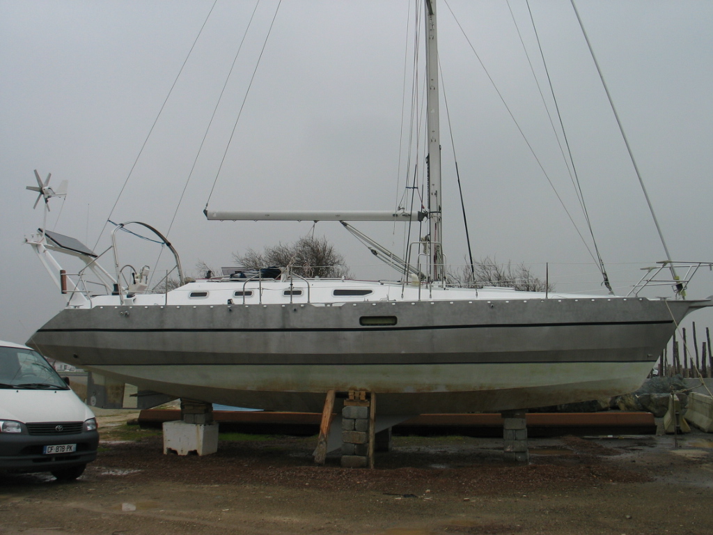 En 2013 nous avons acquis un Ovni 385, en parfait état, trouvé sur un quai de La Faute-sur-Mer en Vendée.