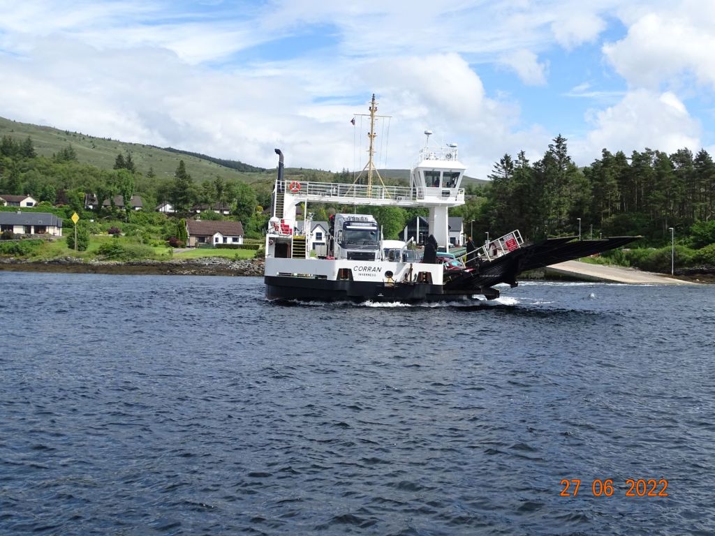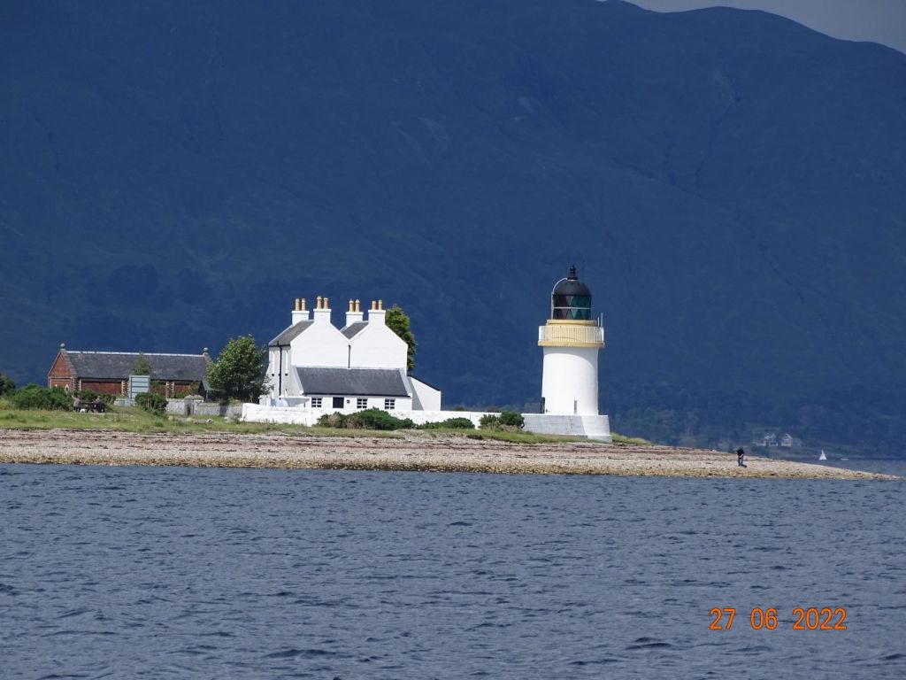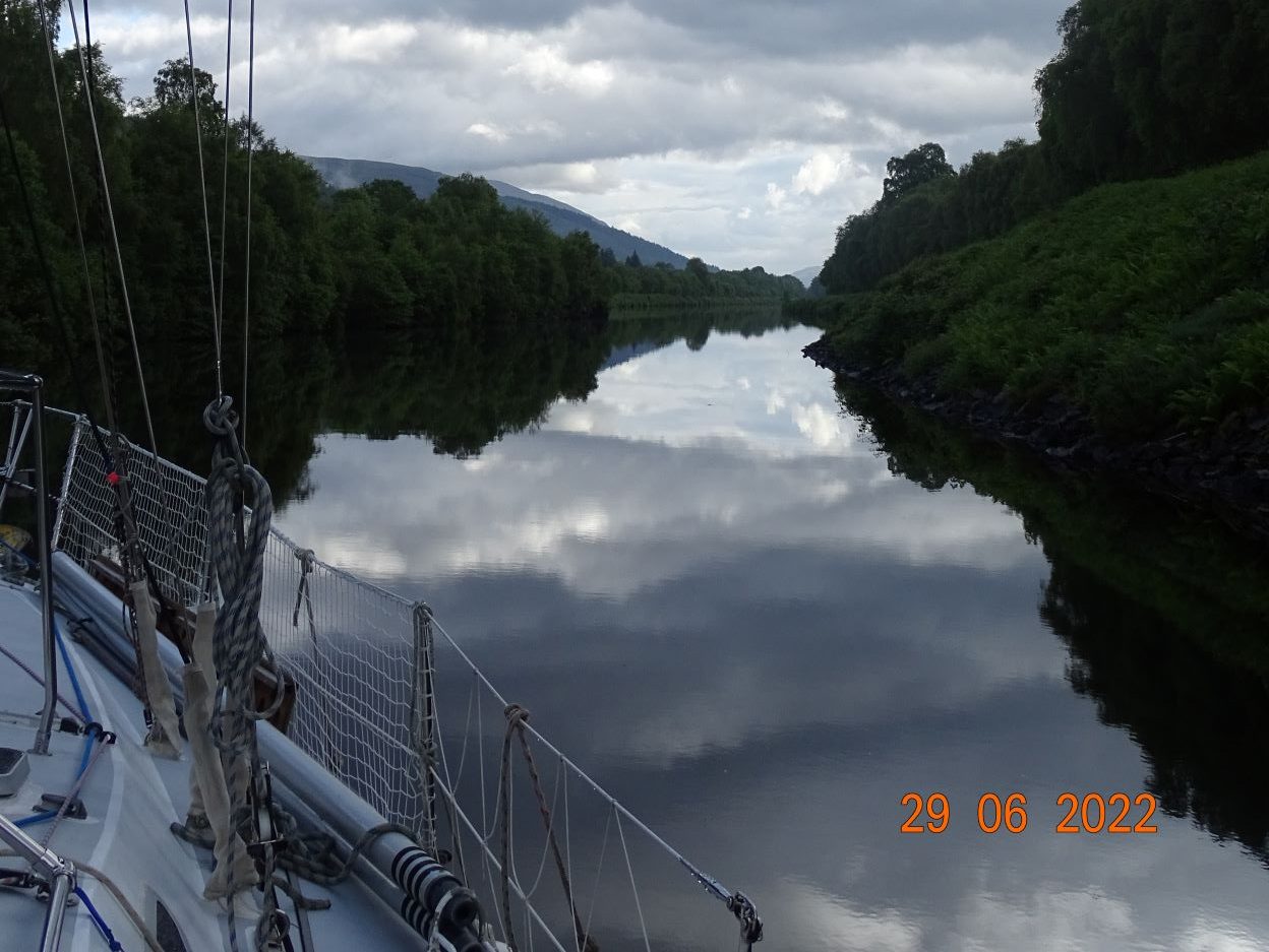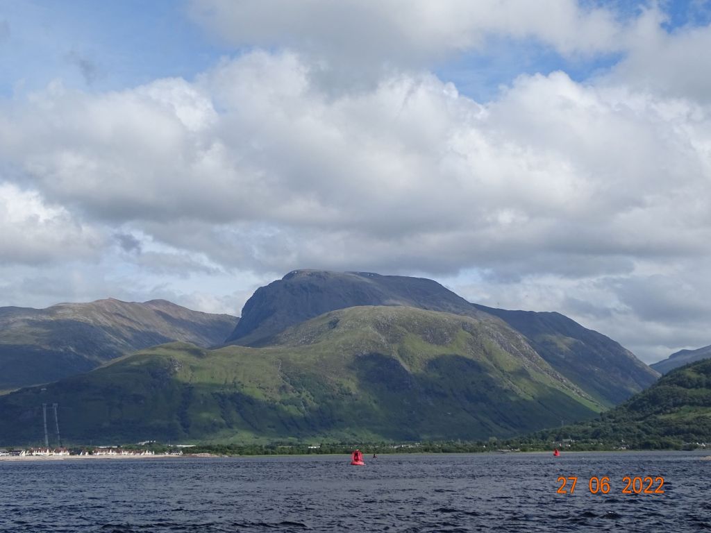 Le 27 juin, la météo s’étant un peu améliorée, nous entreprenons la remontée du Loch Linnhe vers Fort William. Un bon vent nous pousse sur ce très long loch qui se resserre progressivement. A Corran Narrow le passage est très étroit et le courant assez violent, un bac fait la navette entre les deux rives. Nous arrivons en fin d’après-midi devant l’entrée du canal à Corpach. Nous mouillons dans la courbure du loch pour attendre le lendemain matin, le fonctionnement s’arrêtant à 18 heures. Nous sommes au pied du célèbre Ben Nevis qui, ce soir, a abandonné sa couronne de nuage pour que nous puissions l’admirer.