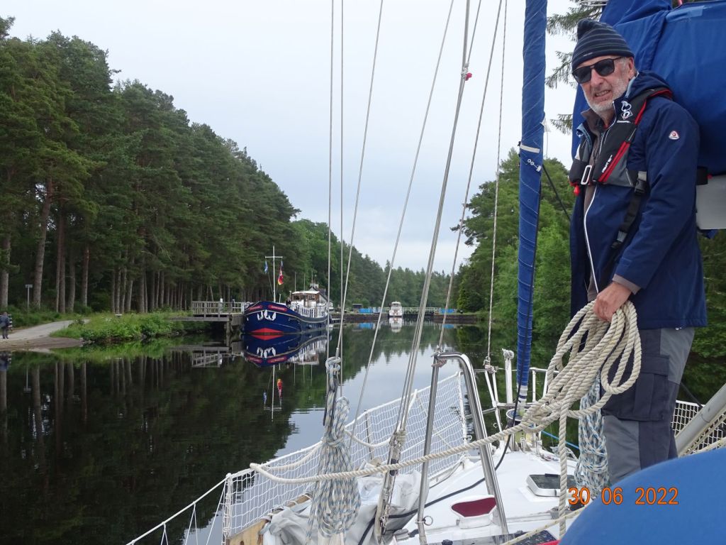 Les éclusiers sont extrêmement serviables et efficaces. Si nous pensions que ce serait un peu sport de passer toutes ces écluses tous les deux, sans équipier, nous sommes complétement rassurés. Il y a toujours quelqu’un pour vous prendre vos amarres et s‘assurer que vous êtes correctement placé. Nous étions le seul bateau à passer les 8 écluses de l’après-midi et avions trois éclusiers à notre disposition avec lesquels nous avons eu le temps de discuter pendant les presque deux heures de l’ascension. C’était bien sympathique malgré la pluie battante. Il ne pleut jamais autant nous ont-ils dit… Mon œil !