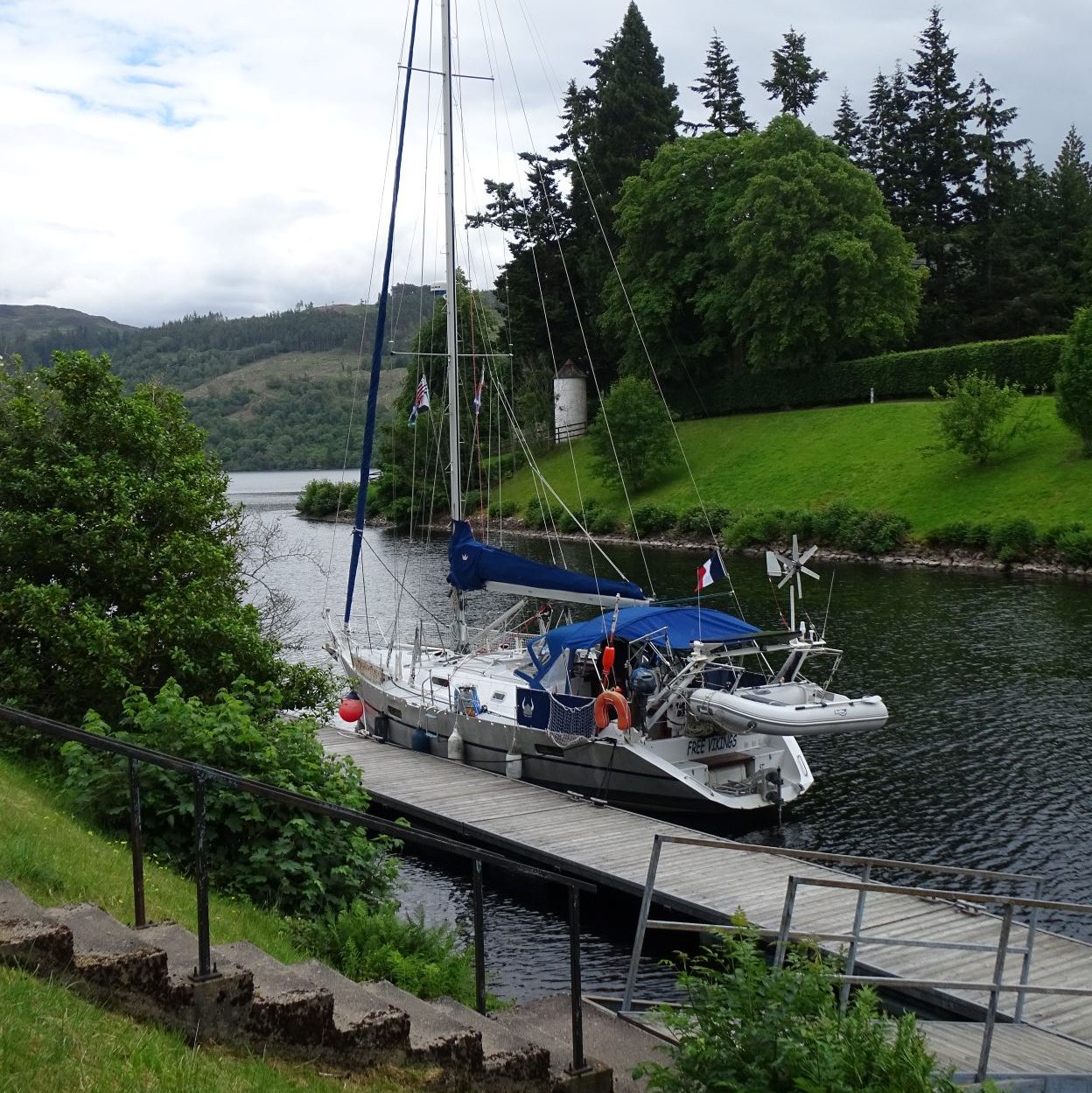 Notre dernier jour sur le canal nous amène à Inverness. Nous traversons les 20 milles du Loch Ness partiellement à la voile, poussés par un petit vent. Pas de monstre à l’horizon, quelques remous entretenus pas les bateaux de promenade qui font des ronds dans l’eau. Cette légende est un grand canular, pour lequel on a même réussi à élaborer des théories scientifiques, toutes plus fumeuses les unes que les autres. Le paysage est magnifique, les montagnes qui descendent dans le lac formant des plans successifs avec des enchainements de gris verts différents. Le trajet se poursuit par une portion de canal, se termine par une suite de quatre écluses, et aboutit à Seaport Marina, près d’Inverness, où nous nous amarrons dans l’après-midi. Nous restons au moins deux jours afin de préparer le bateau à la prochaine traversée vers la Norvège ; et aller visiter Inverness, si la pluie nous laisse un peu de répit.