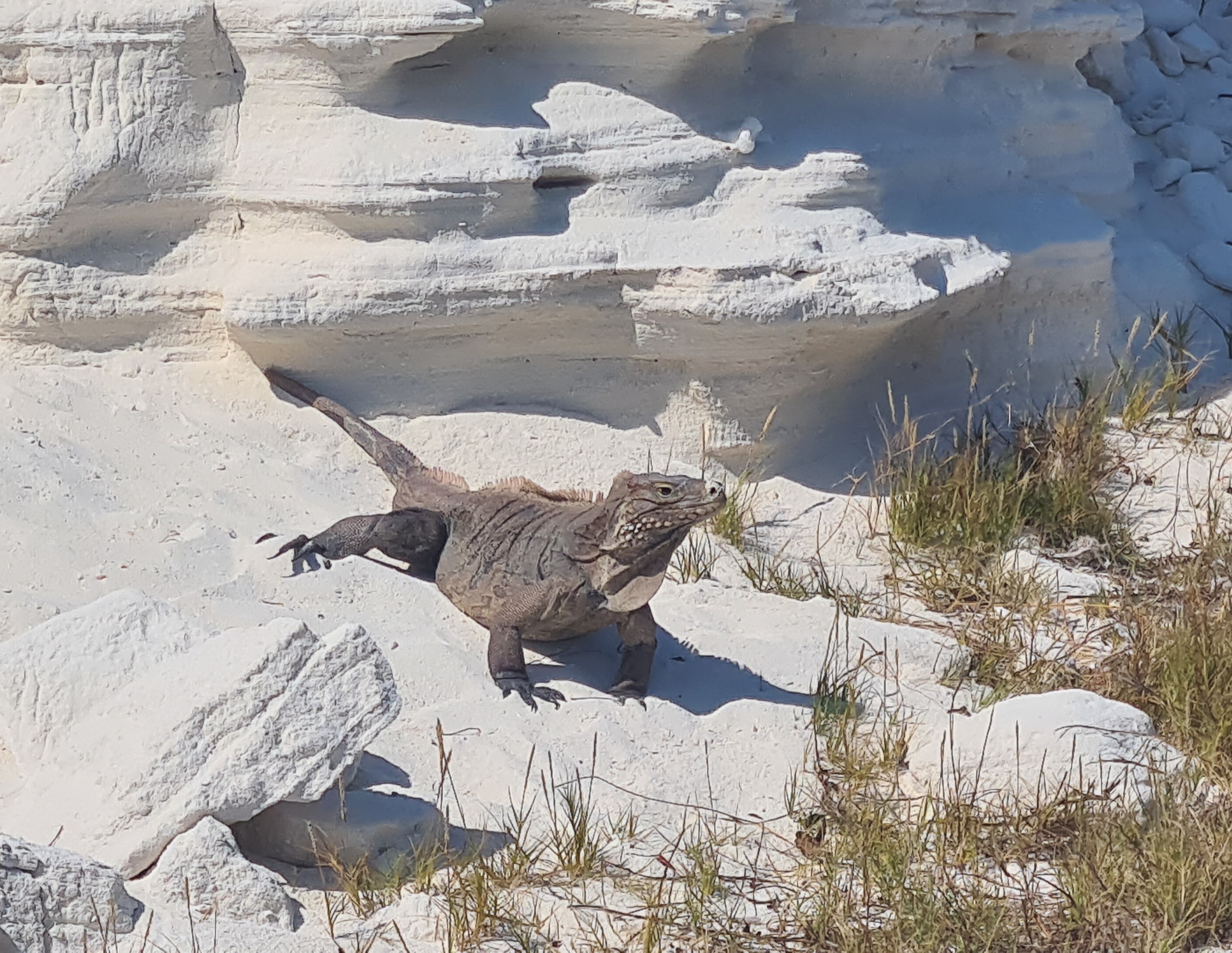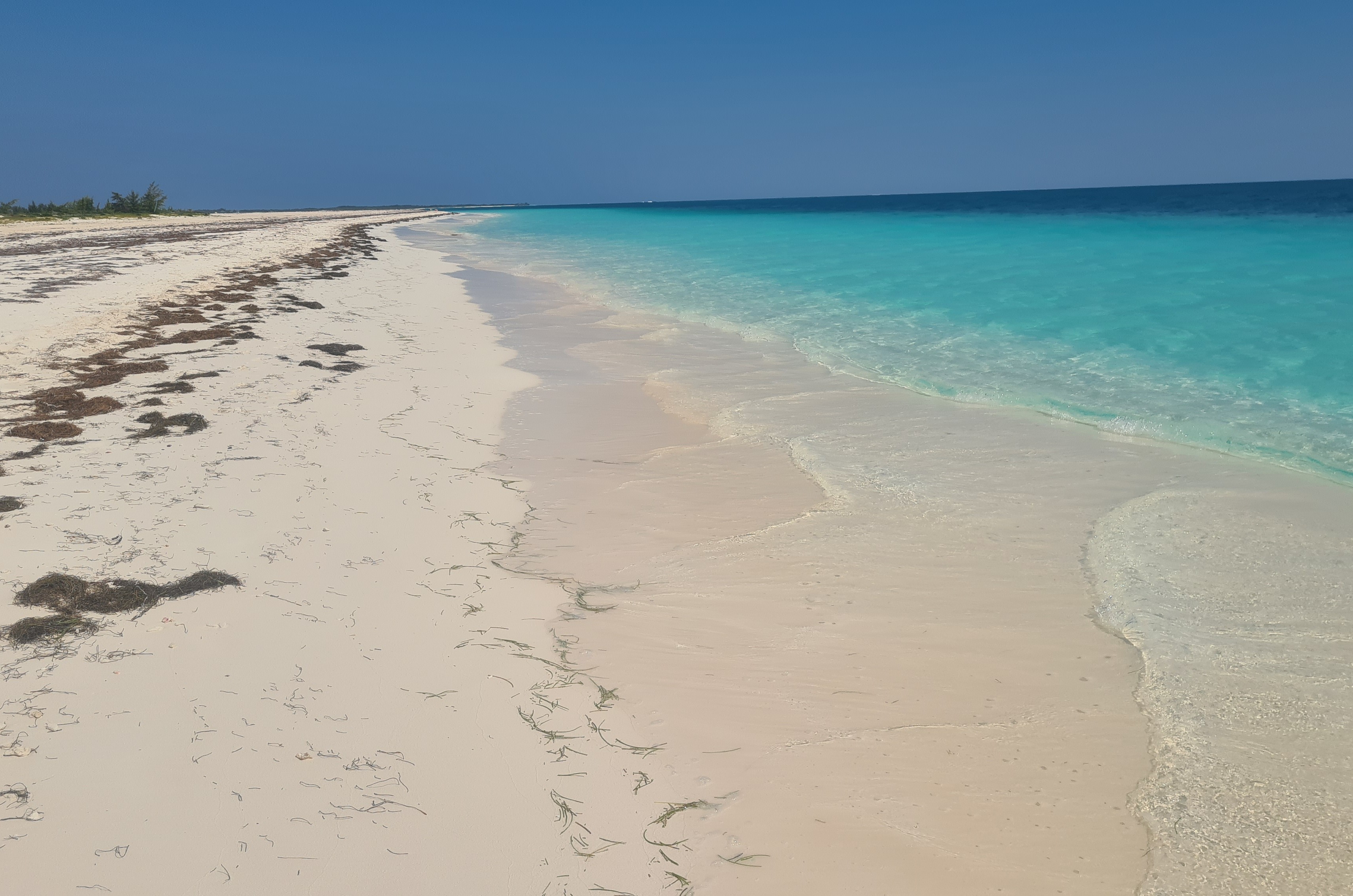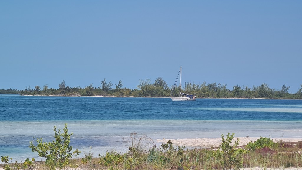 La route est longue environ 80 milles et le vent n’est pas si soutenu que cela, nous obligeant à faire quelques épisodes de moteur. Nous passons au large de jolis récifs coralliens et l’appel de la baignade étant trop fort, nous décidons de nous arrêter à l’abri de la houle de la mer des Caraïbes derrière Cayo Sal. Un magnifique mouillage face à une île désertique, où nous sommes seuls au monde et nous pouvons nous baigner dans une eau turquoise. Quel bonheur ! Mais de jolis mouillages comme cela ça se paye ! Et la nuit, le vent tourne au Nord-Est, se lève à environ 15 nœuds rendant le mouillage bien inconfortable. Nous reprenons donc notre route dès que le soleil se lève pour arriver à Cayo Largo vers midi.