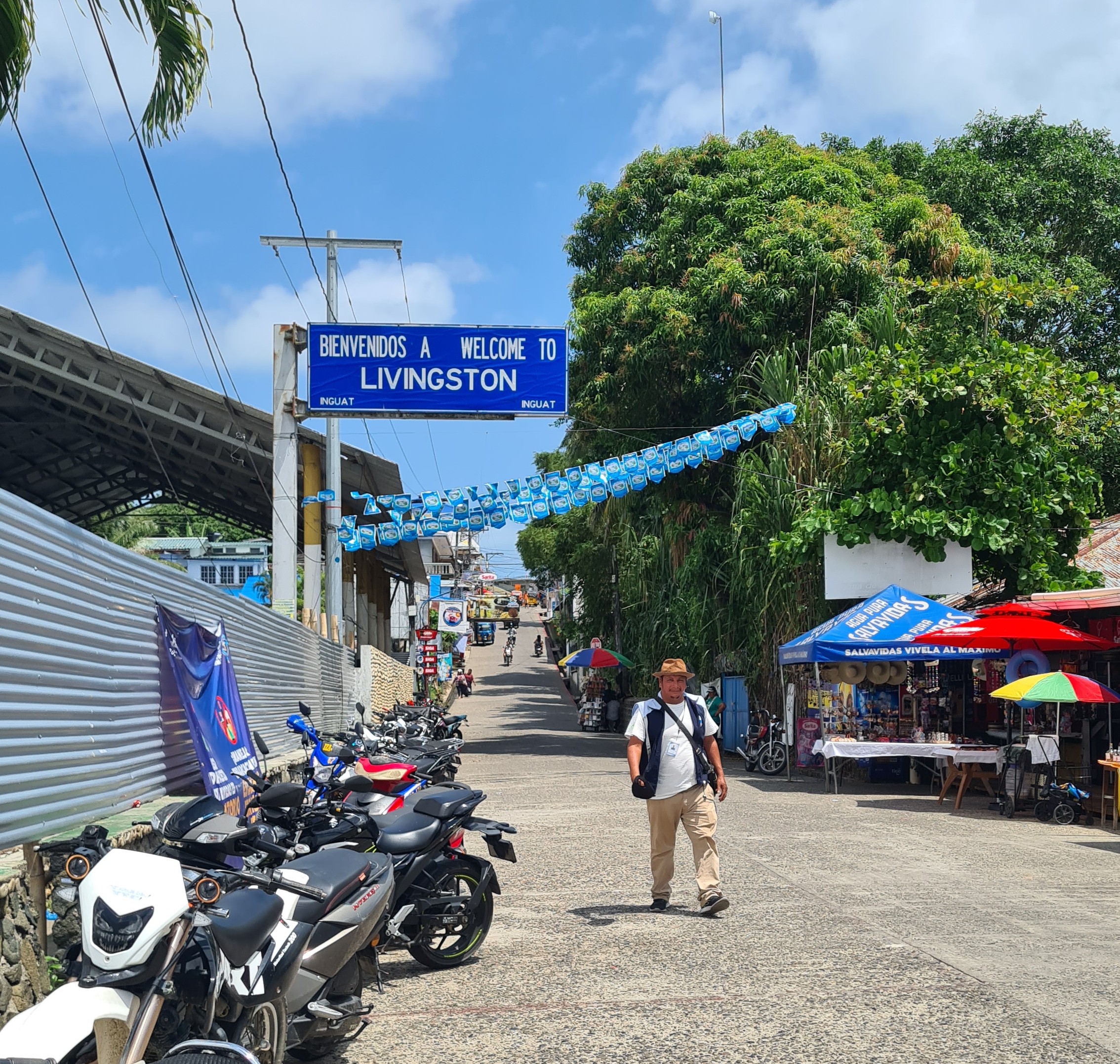 Le lendemain matin ne voyant rien venir nous contactons Raul l’agent qui s’occupe des papiers des plaisanciers arrivant au Rio Dulce. Il finit par arriver vers 10 heures avec les officiels qui prennent nos passeports et les informations nécessaires ; et il nous donne rendez-vous d’ici une heure à son bureau pour récupérer nos papiers en règle. Nous profitons de ce délai pour aller découvrir Livingston.