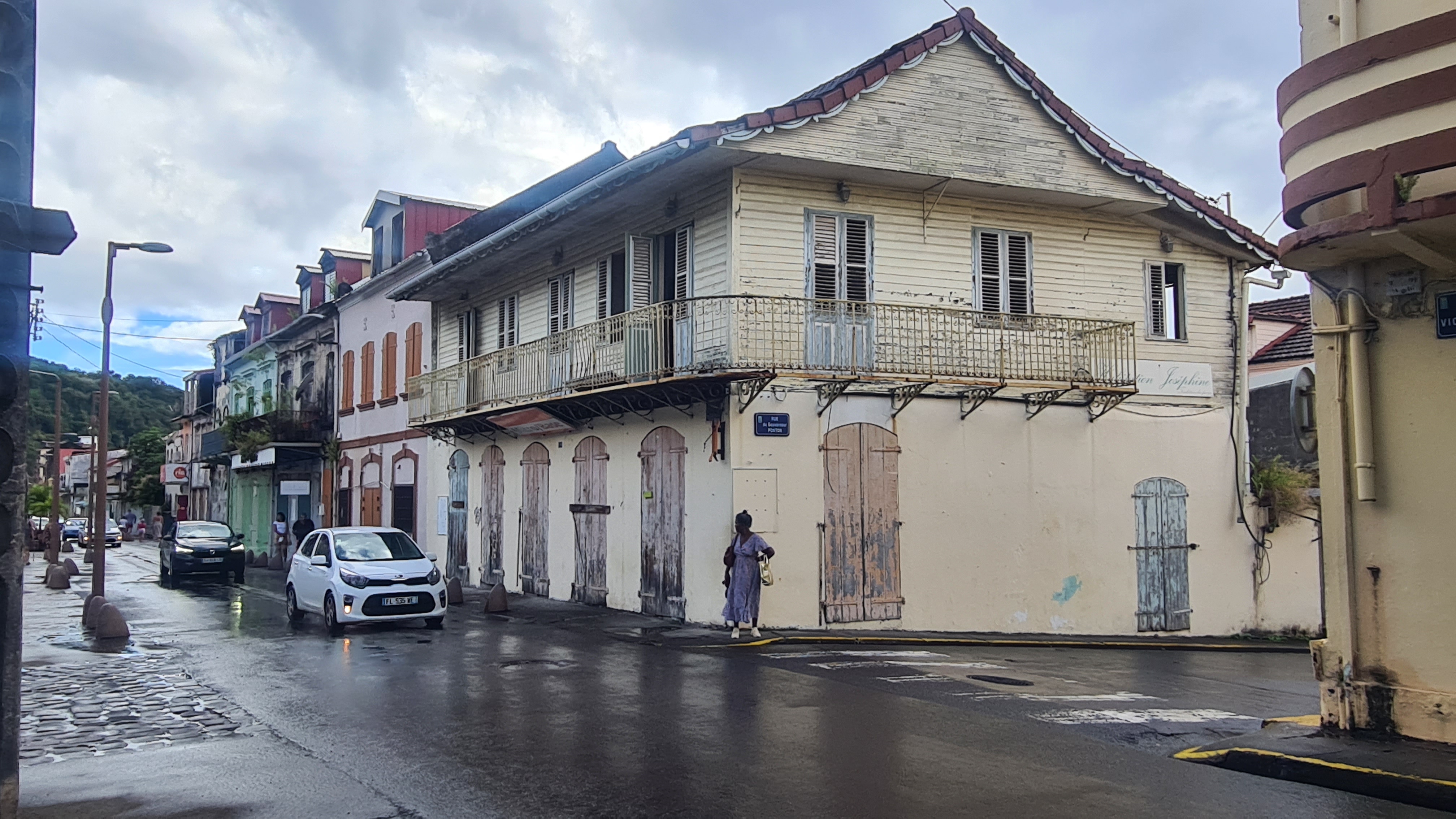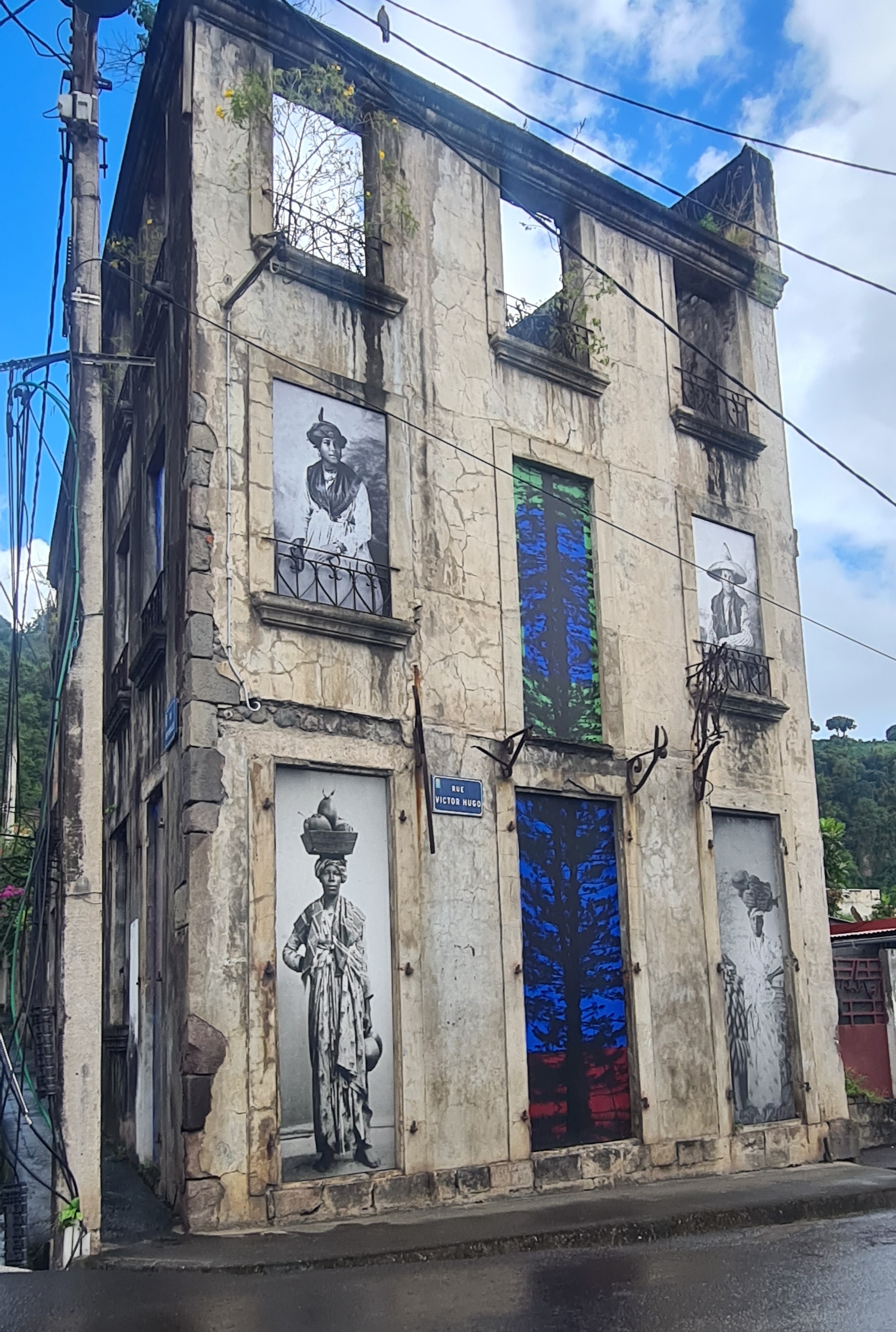 Nous débarquons et redécouvrons la typique ville de Saint-Pierre. Au premier abord, elle nous paraît plus pimpante (ou moins grise) que dans notre souvenir ; mais en se promenant, on trouve toujours au coin d’une rue, ces maisons délabrées et noires, couleur des pierres volcaniques locales ; et on y entretient le souvenir de la terrible éruption de 1902 qui a détruit la ville et y a fait 28000 morts en quelques minutes.