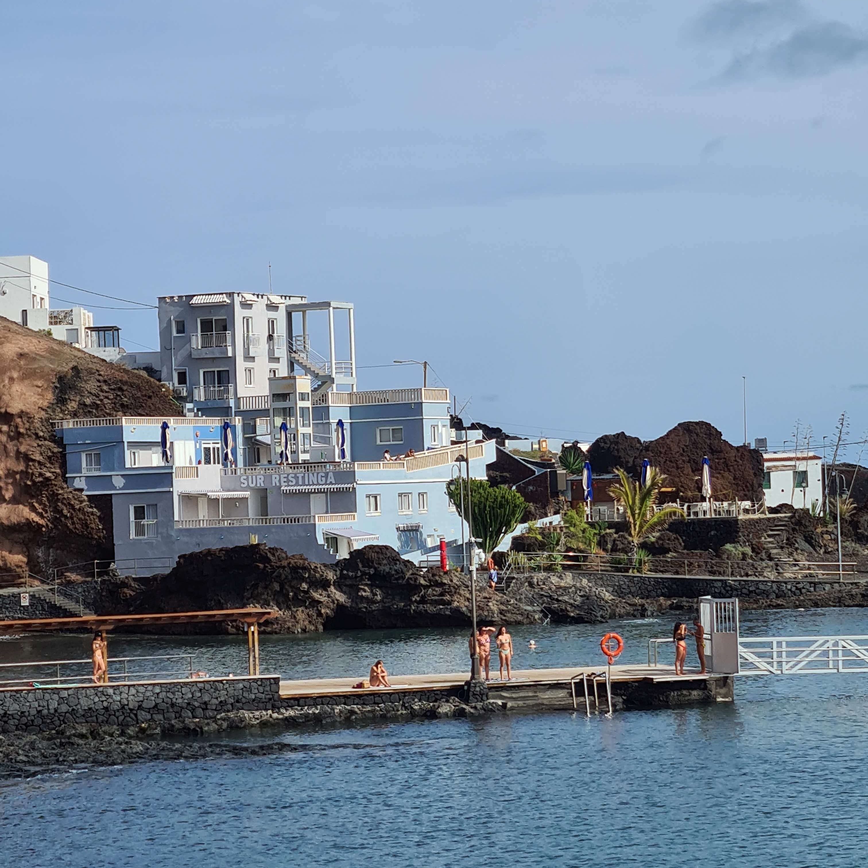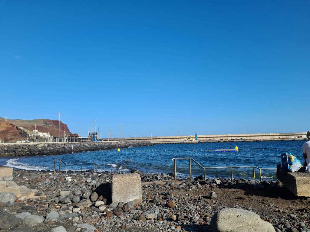Le port est un peu isolé, éloigné de 9 km de la ville principale Valverde qui se trouve sur les hauteurs. Et malgré sa gestion un peu olé olé, le port est très accueillant équipé de sanitaires corrects, d’une vaste aire de stockage à sec, d’une darse, où il ne manque plus que le roue-lève ou une grue. Une jolie plage de sable noir aménagée jouxte la marina et me permet de reprendre mes habitudes de petit bain matinal. C’est vivifiant ! L’eau de la mer et la température extérieures ne dépassant pas 20°, ça met en forme !