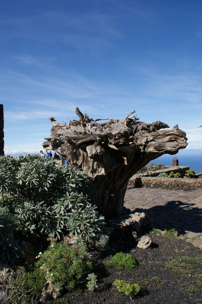 Le Garoé est un arbre sacré des habitants indigènes de l’île les Bimbaches. Cet arbre a le pouvoir de faire se condenser l’eau amenée par les alizées et comme il se trouve planté sur une configuration géologique particulière avec une couche souterraine imperméable, l’eau se trouve stockée dans le sous-sol en nappes. L’arbre originel est mort mais un autre arbre a été planté au même endroit qui est maintenant un lieu d’attraction touristique et de mémoire.