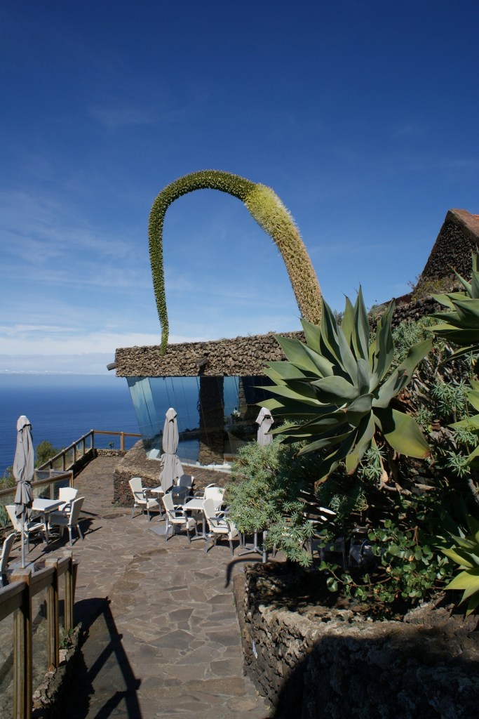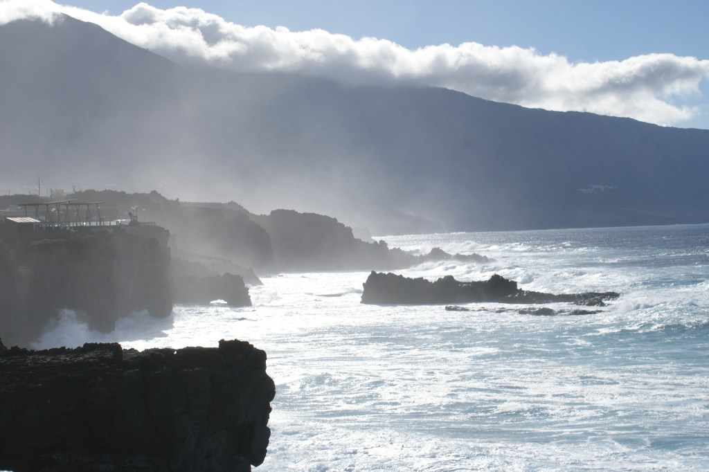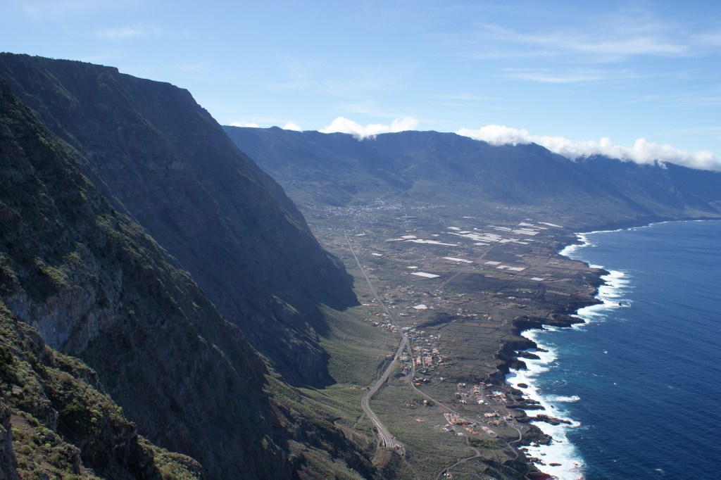 Nous louons une voiture pour partir découvrir les merveilles naturelles de cette île isolée loin du tourisme de masse. Les « Miradores » nous permettent d’admirer de très beaux panoramas de l’île volcanique qui plonge dans la mer par de vertigineuses falaises. Au Nord-Est de l’île un bassin d’effondrement a créé une vaste plaine El Golfo entourée d’un côté par la mer et de l’autre par des falaises hautes de 1000 mètres. La houle de l’Atlantique vient se briser sur la côte de El Golfo sur les roches volcaniques noires formant de beaux contrastes de couleur. Cette plaine fertile abrite des plantations de bananes et d’ananas, principales productions de l’île avec la vigne et les quelques produits laitiers de l’élevage.
