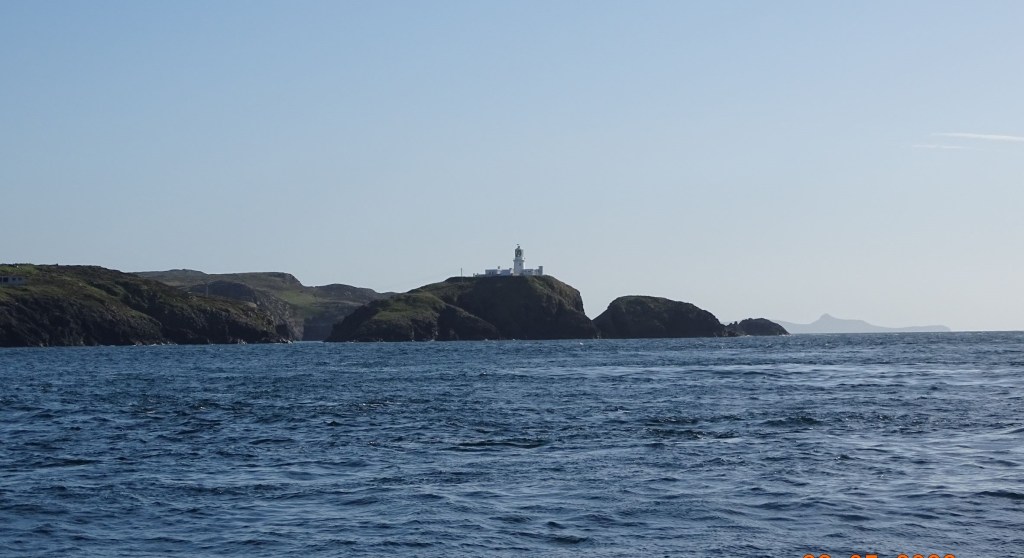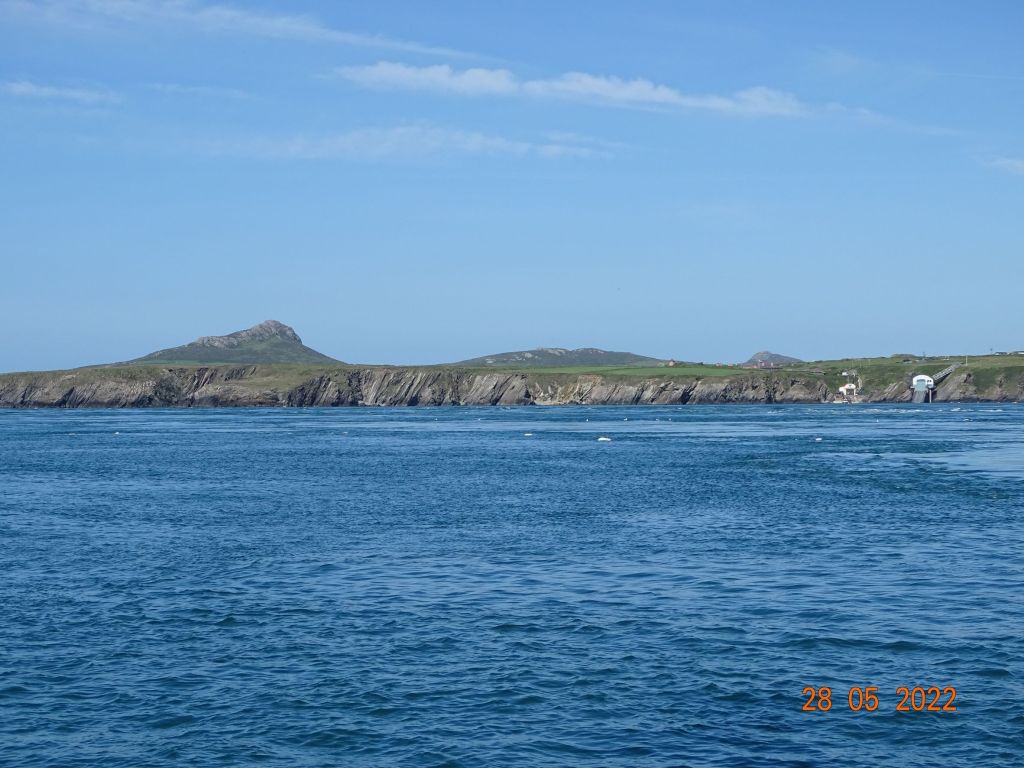 Les trois jours qui suivent nous faisons trois étapes vers le Nord avec un vent dans le nez donc appuyés au moteur, voire complètement au moteur. Nous devons nous lever tôt pour pouvoir bénéficier du courant portant non négligeable dans ce canal Saint Georges. Les passages entre les iles ou les passages de cap sont souvent agités, si ce ne sont pas de vraies bouilloires dignes de nos raz dans la Manche. Nous empruntons Jack Sound puis Ramsey Sound, passages entre la terre et les iles du même nom, pour aller mouiller à Fishguard un abri au Nord de la péninsule Pembrokeshire. Le lendemain, nous traversons Carnigan Bay pour aller mouiller dans la baie d’Aberdaron d’où nous partons au lever du jour pour emprunter Barsdey Sound et arriver le soir à Holy Head marina après avoir lutté deux heures contre le courant pour faire les cinq derniers milles. La côte est très belle verte, découpée, rocheuse, digne de paysages irlandais.