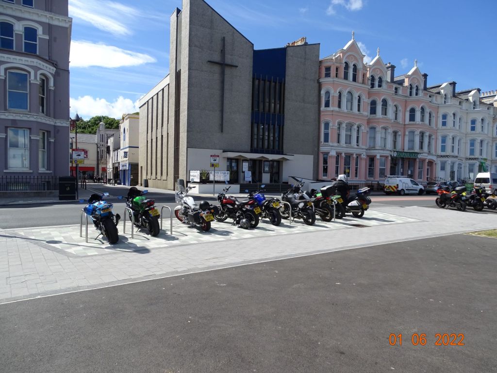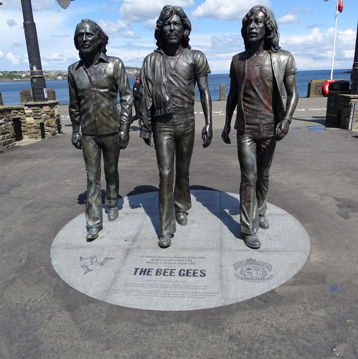 Le Tourist Trophy, course de moto open, qui a lieu tous les ans sur l’île de Man amène de nombreux touristes. Des vrombissements de motos s‘entendent quasiment en continu. Il y a des motos et des motards partout. Les rues piétonnes de Douglas sont animées, de nombreux magasin proposent des articles en relation avec la moto. Nous retrouvons avec plaisir, après les rues dessertes des villes du Pays de Galles, une ambiance légère de ville touristique. L’architecture est variée : des maisons en ardoise ou en brique sombre mais typiques, des maisons à colombages ou même du style art déco. Une belle plage bordée d’hôtels a des allures de Riviera à l’anglaise. A l’entrée du port, un petit fort a été érigé sur un plateau rocheux pour le mettre en évidence et rendre hommage aux nombreuses victimes qu’il a fait, de nombreux navires s’y étant fracassés. Saviez vous que les Bee Gee étaient originaires de l’Île de Man ?