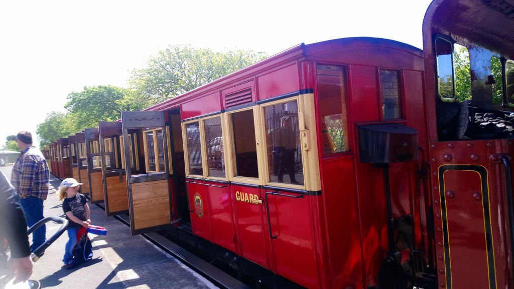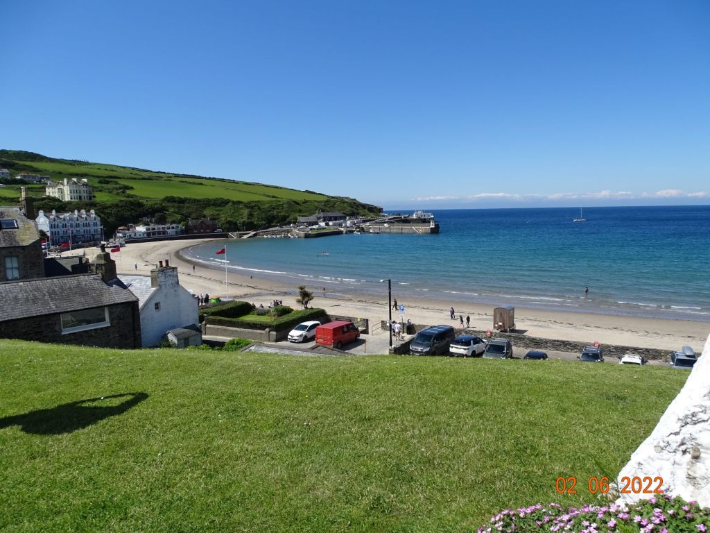 Le lendemain nous partons découvrir le Sud de l’île par le petit train touristique à vapeur. De jolie locomotives rutilantes mènent une série de wagons à compartiments capitonnés. Une balade dépaysante jusqu’à Port Erin, un joli mouillage devant une belle plage. On y découvre une mine de cuivre désaffectée, signe d’une activité industrielle ancienne. L’intérieur de l’île est très rural avec des élevages de vaches et de moutons, des paysages de bocage très vert. Au retour le train stoppe soudain et nous voyons le conducteur courir le long du train pour aller éteindre à l’aide sa pelle, un incendie qui a pris sur la voie. Un petit intermède qui nous distraie !