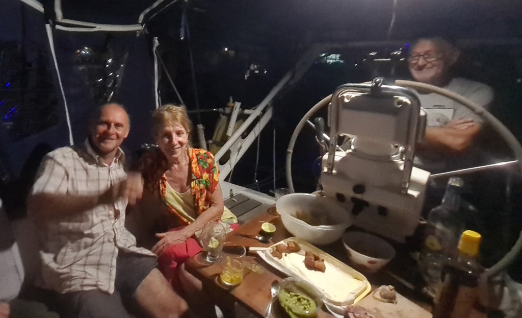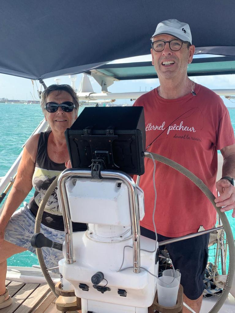 Nous fignolons encore pendant 2 jours les préparatifs : rangement de l’annexe, installation du régulateur d’allure, remplacement de drisses et d’écoutes défectueuses, avitaillement avec l’aide Françoise et Roland, mise en place de protections anti-usure sur certaines drisses, vidange moteur, remise en service du téléphone satellite (et ce n’est pas une sinécure, les logiciels de transfert des fichiers grib sur l’ordinateur changent tout le temps ! – Nous résistons pour ne pas passer à Starlink), etc…