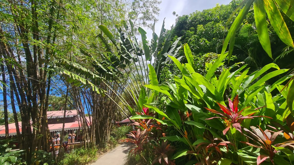 Une escapade au Nord de Basse-Terre nous conduit au charmant village de Deshaies que nous connaissons bien pour avoir souvent mouillé dans sa baie. Nous visitons le joli jardin botanique et déjeunons sur la plage dans un restaurant un peu tristounet mais qui nous régale d’une fricassée de chatrou (met local à base de poulpe).