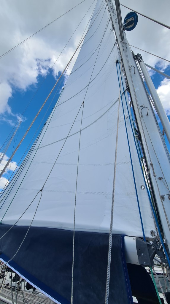 Le 6 mars le voilier nous livre notre grand-voile avec une semaine d’avance, quelle bonne surprise ! Nous l’installons avec son aide et elle tombe bien, tout paraît correct. Il ne nous reste qu’à fignoler quelques réglages. Je vous recommande Tony de Gwada Yacht Service : outre sa réactivité, son contact bien sympathique, il est de parole et travaille bien.