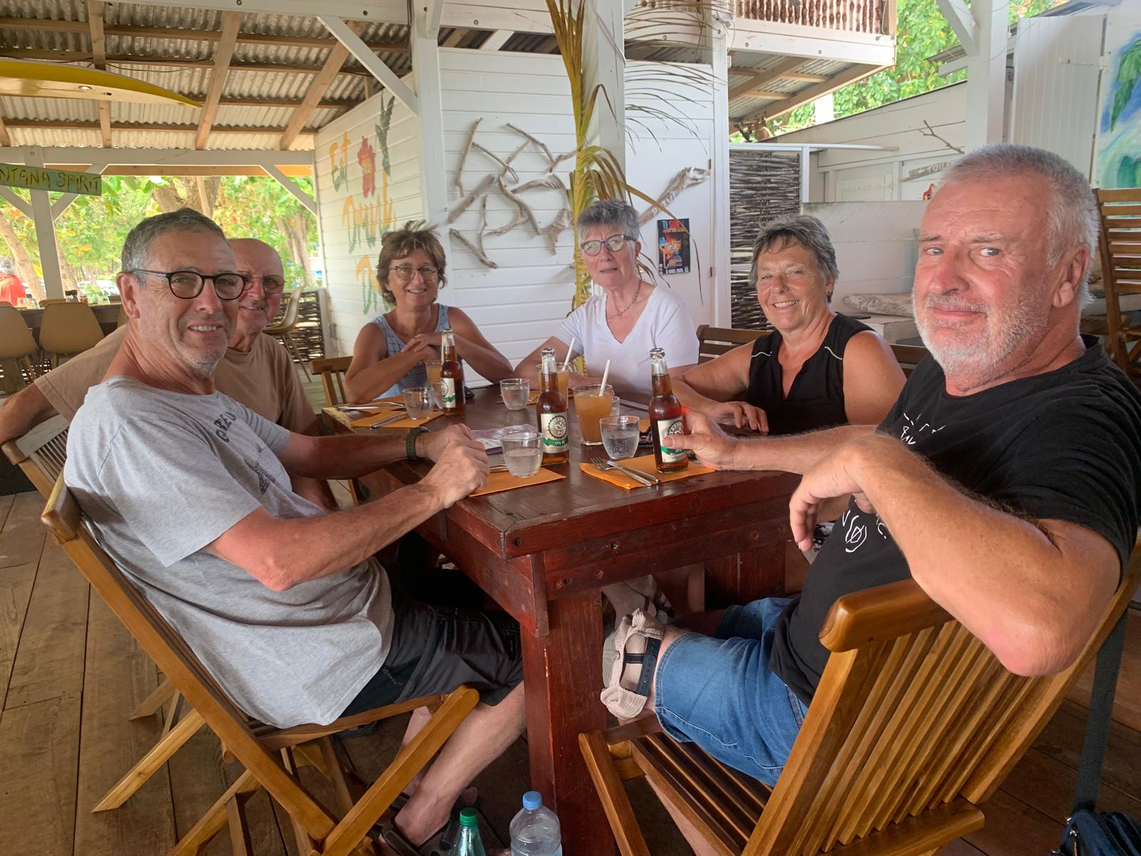 Nous trouvons à louer une voiture pour 6 personnes et nous voilà partis pour une découverte pour certains, re-découverte pour les autres, des distilleries Père Labat, Bielle, Bellevue… Nous déjeunons dans un sympathique restaurant sur la plage.
