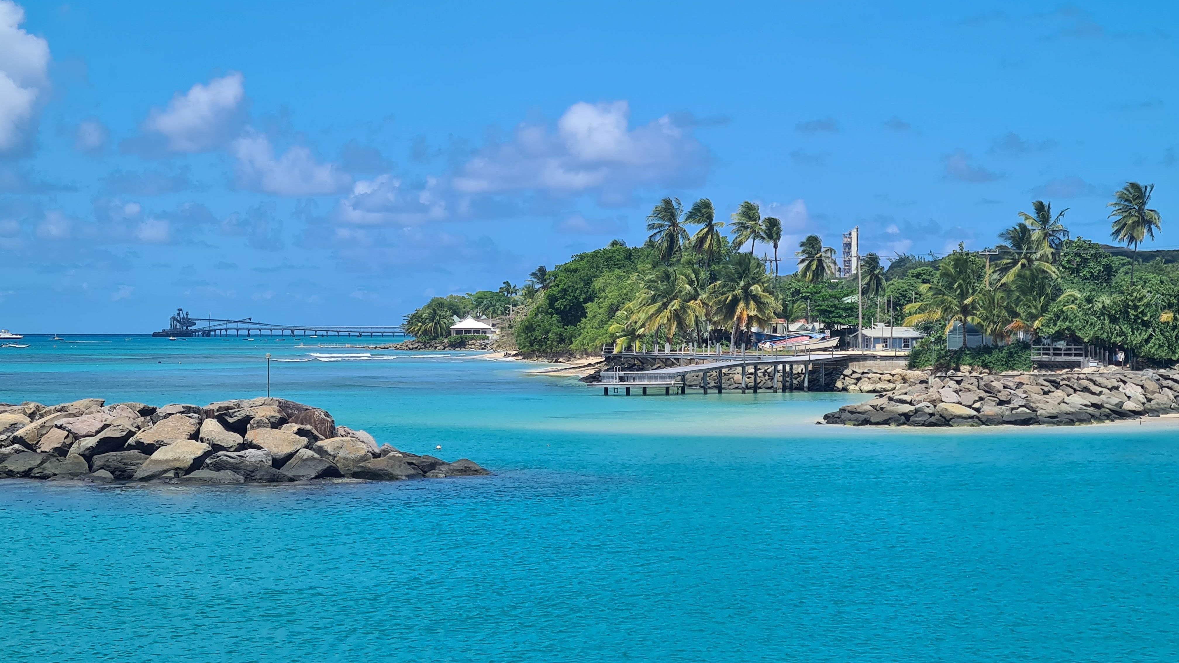 Située à une cinquantaine de milles à l’Est de l’arc antillais donc au vent, elle est un peu à part. Il faut s’y arrêter sur le chemin Est-Ouest sinon il faut lutter contre les alizés et la houle de l’Atlantique pour l’atteindre. Elle ne fut pas découvert par Christophe Colomb mais plus tard par un Portugais, D’autre part du fait de sa situation, les péripéties historiques subies par les autres îles qui sont passées des mains des Anglais, au Français, ou aux Espagnols, sans oublier les Néerlandais, ne l’ont pas affectée. Elle a été longtemps sous seule domination anglaise avant son indépendance. Cette histoire finalement assez calme a contribué à sa prospérité. Prospérité, comme ailleurs dans l’arc antillais, acquise par l’exploitation de la canne à sucre, grâce à la main œuvre gratuite de l’esclavage. Avec le tourisme, la canne à sucre reste sa principale ressource, mais tout le monde bénéficie aujourd’hui des bienfaits de cette île riche et relativement peuplée.