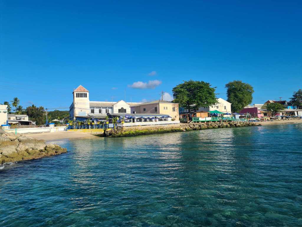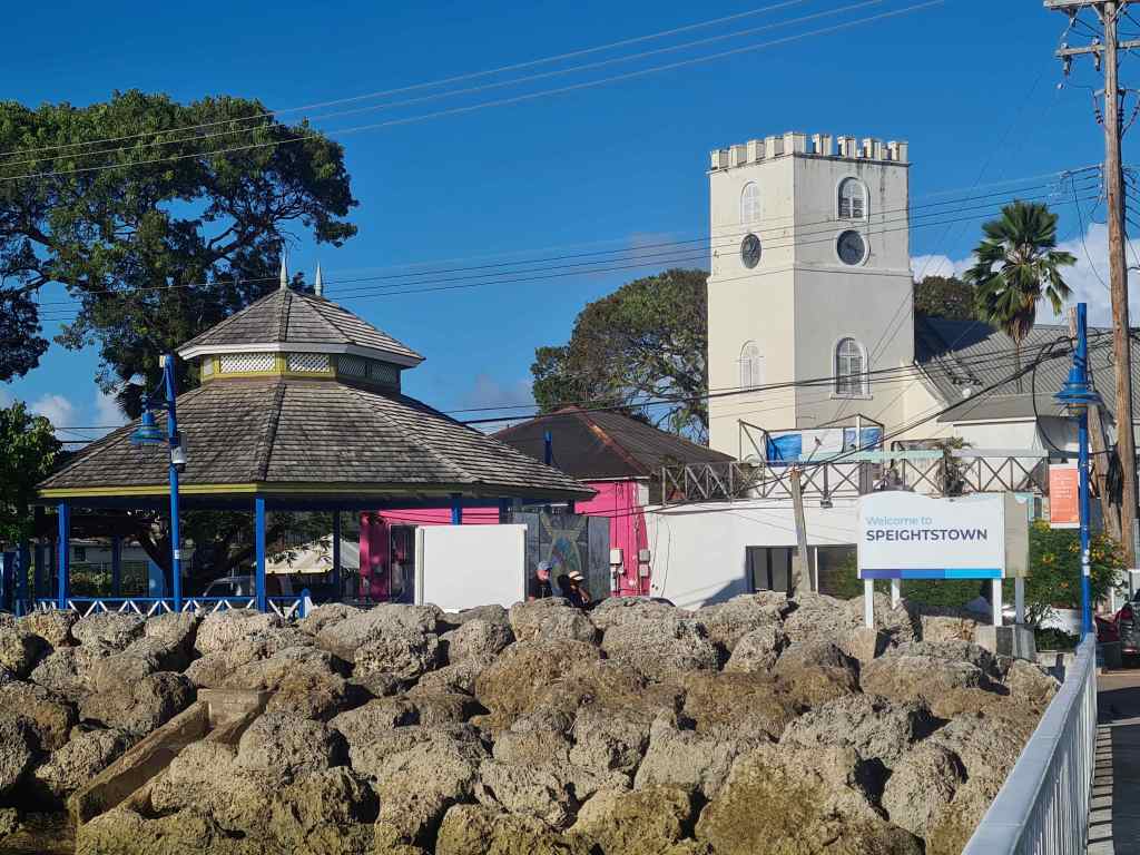 Il n’y a rien d’autre à la marina et nous devons prendre l’annexe pour rejoindre le village de Speightstown un mille plus au Sud où un ponton pour annexe est aménagé sur la jetée, et où nous trouvons de quoi nous ravitailler, acheter une carte sim locale et faire laver notre linge sale qui s’accumule. L’ambiance au village est très différente de celle de Port Saint-Charles, peuplé de vieux riches américains en vacances. Outre les deux petits supermarchés nous pouvons nous ravitailler en fruits et légumes directement sur les étals des locaux qui vendent leurs produits dans la rue. Les rues sont très animées, nous croisons des enfants en uniforme qui partent ou reviennent de l’école. Des bars se suivent le long de la plage et on peut y venir admirer le coucher de soleil en dégustant du rhum local, si on n’est pas trop incommodé par les couacs des locaux s’adonnant au karaoké, distraction très prisée le samedi soir.