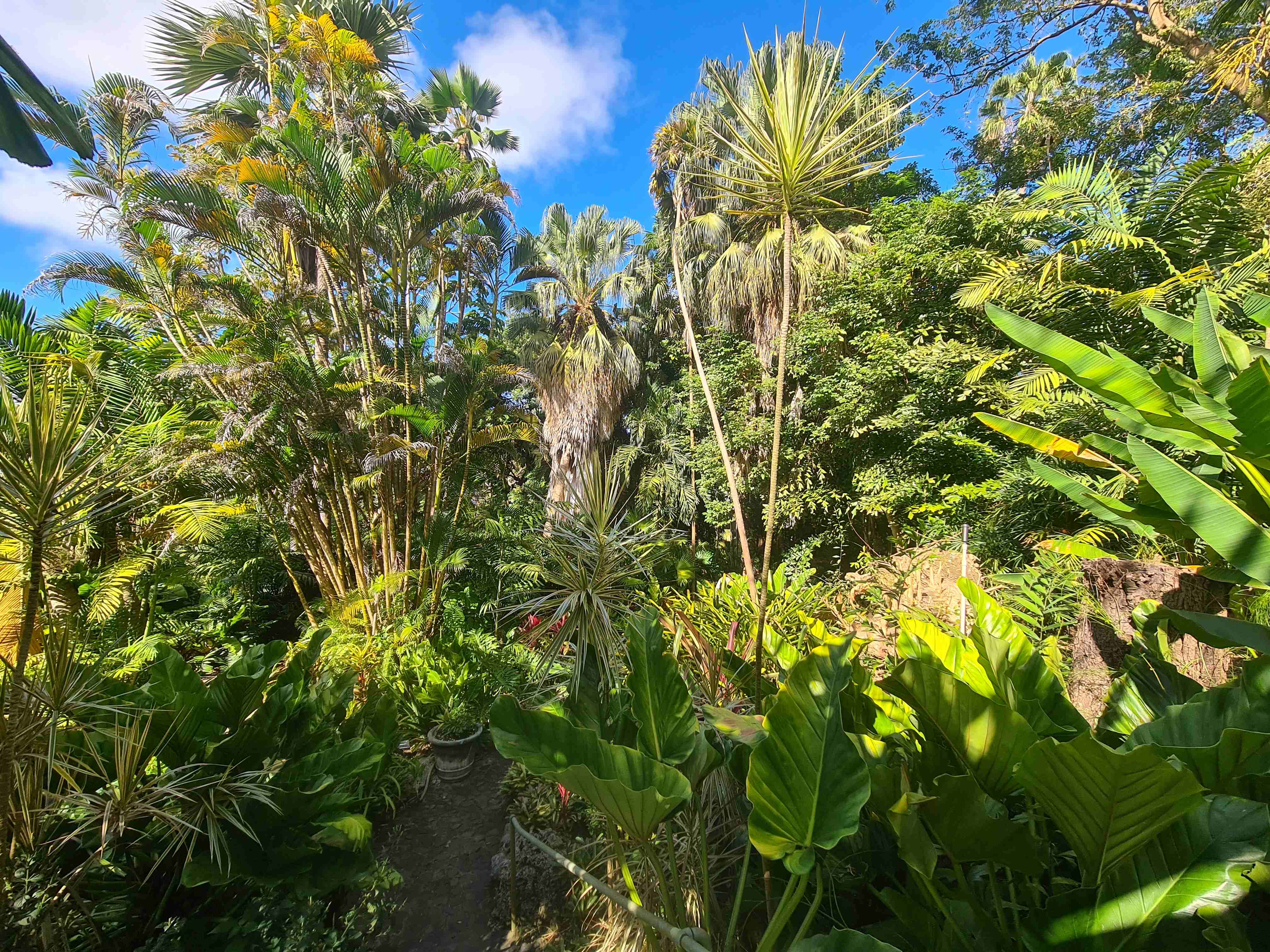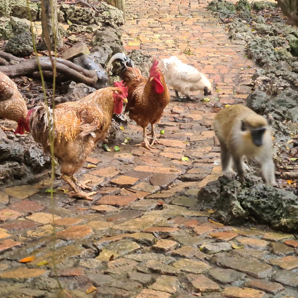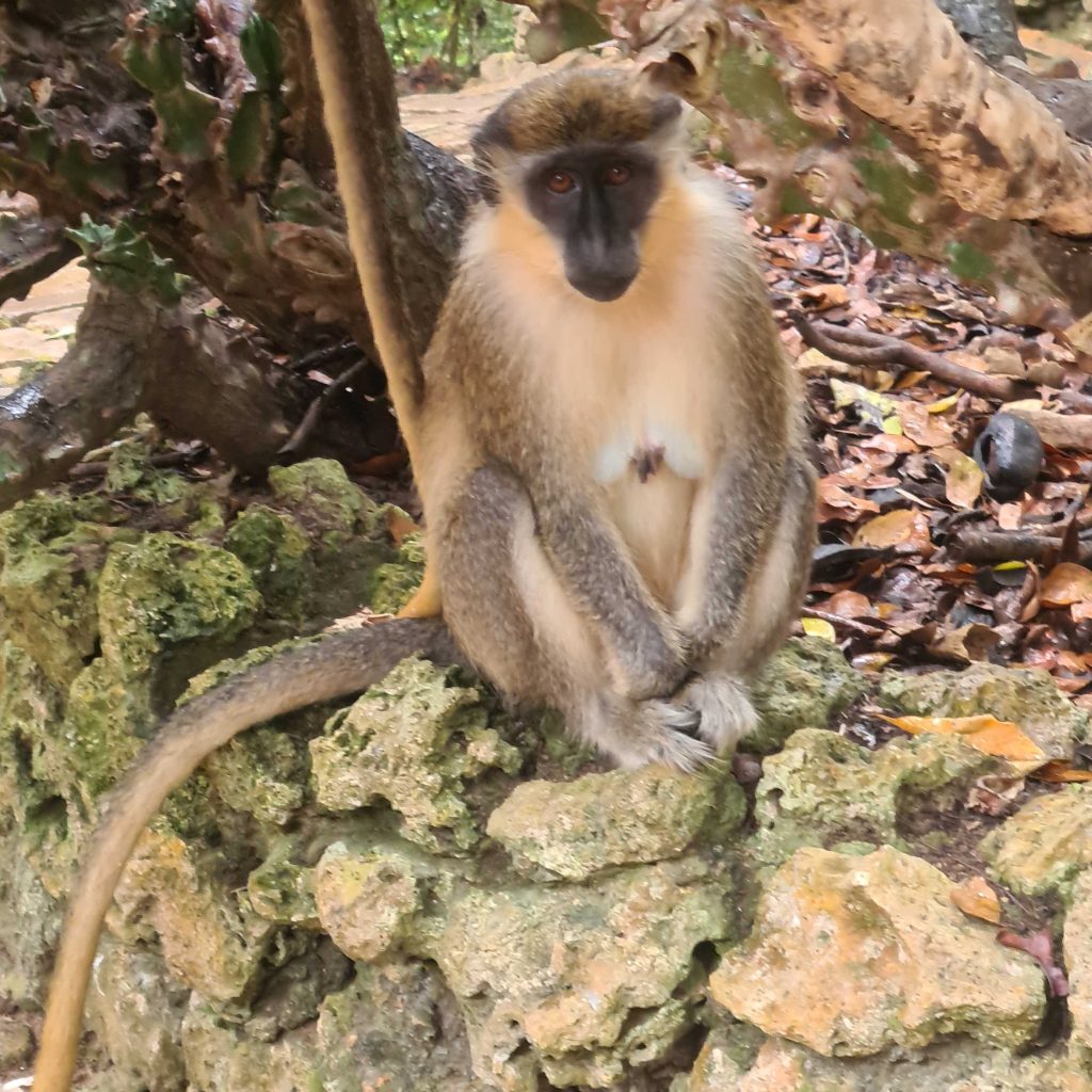 L’île regorge de jardins botaniques, nous visitons « Andromeda Botanic Garden » et le petit zoo de la « Wild Life Reserve » où se promènent tortues, volatiles divers, un beau paon et des singes en liberté ; et où on peut admirer des aras et des serpents. Nous longeons la côte Est où la houle de l’Atlantique vient déverser ses gros rouleaux sur de belles plages. Nous nous promenons dans « Farley Hill Nationnal Park », où se trouvent les ruines d’un grand manoir détruit par le feu et qui abrite de magnifiques arbres. Savez sous que le nom Barbade vient des arbres présentant des racines lianes qui retombent : les « arbres à barbe » ?