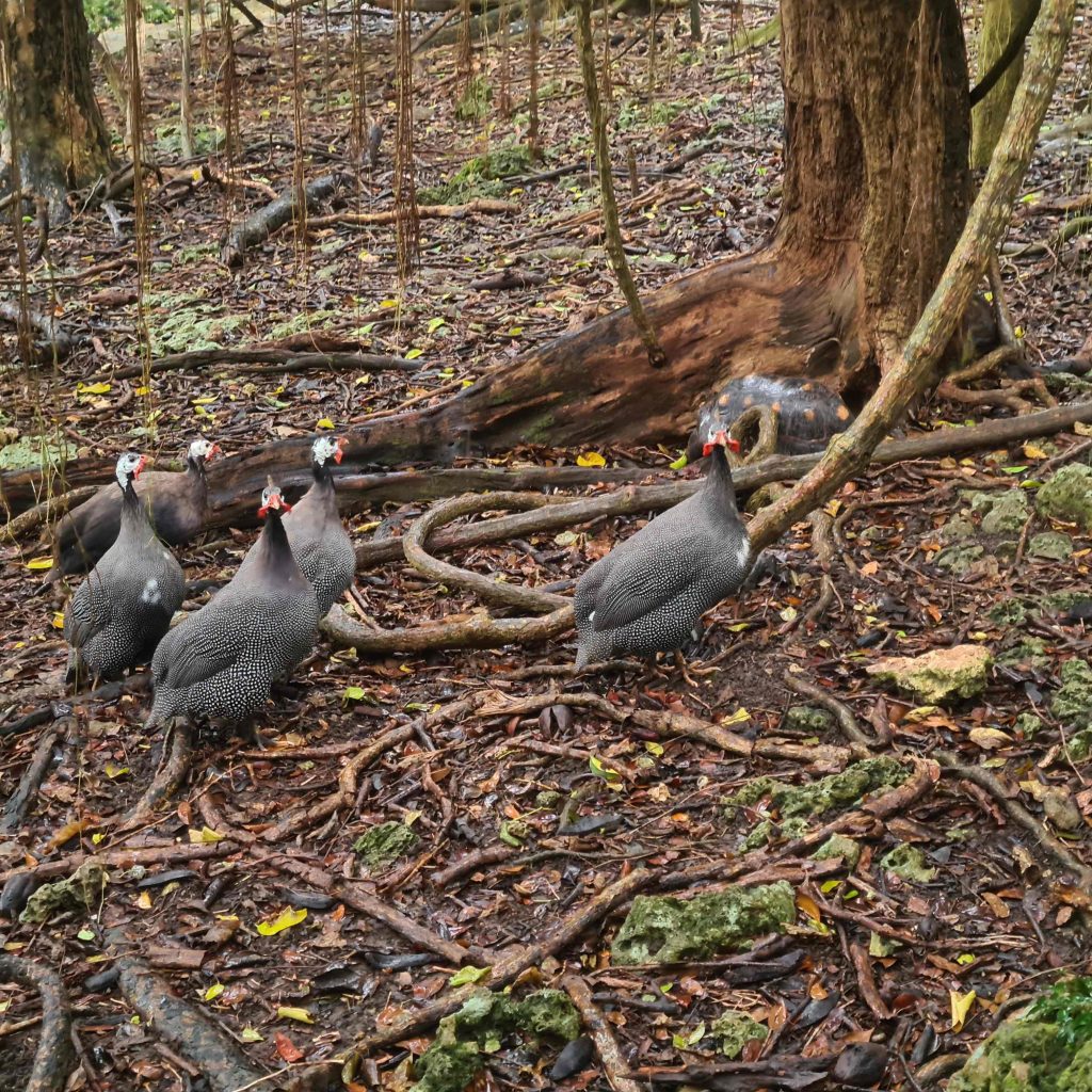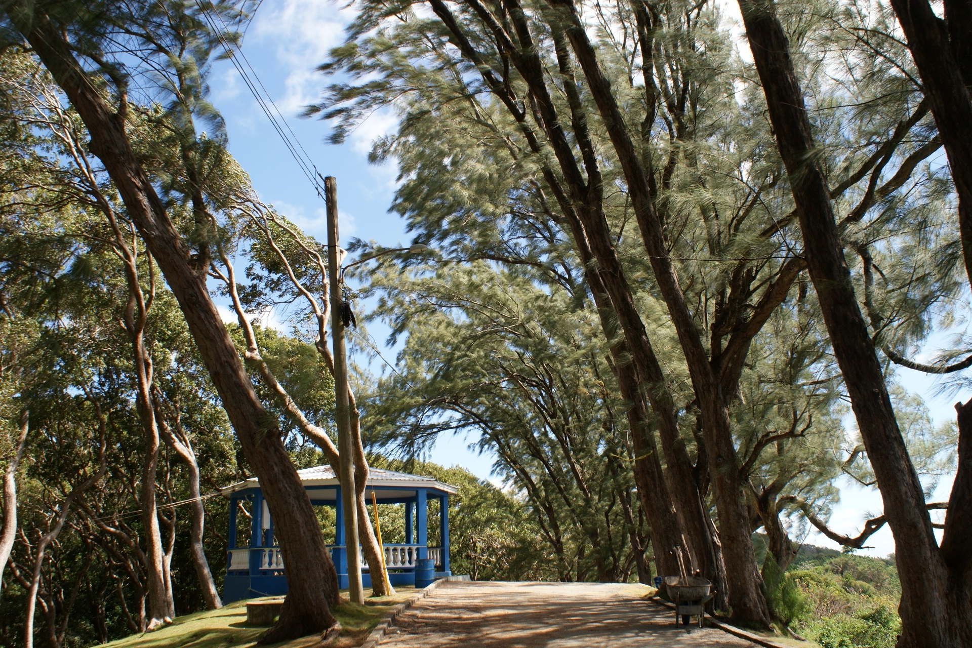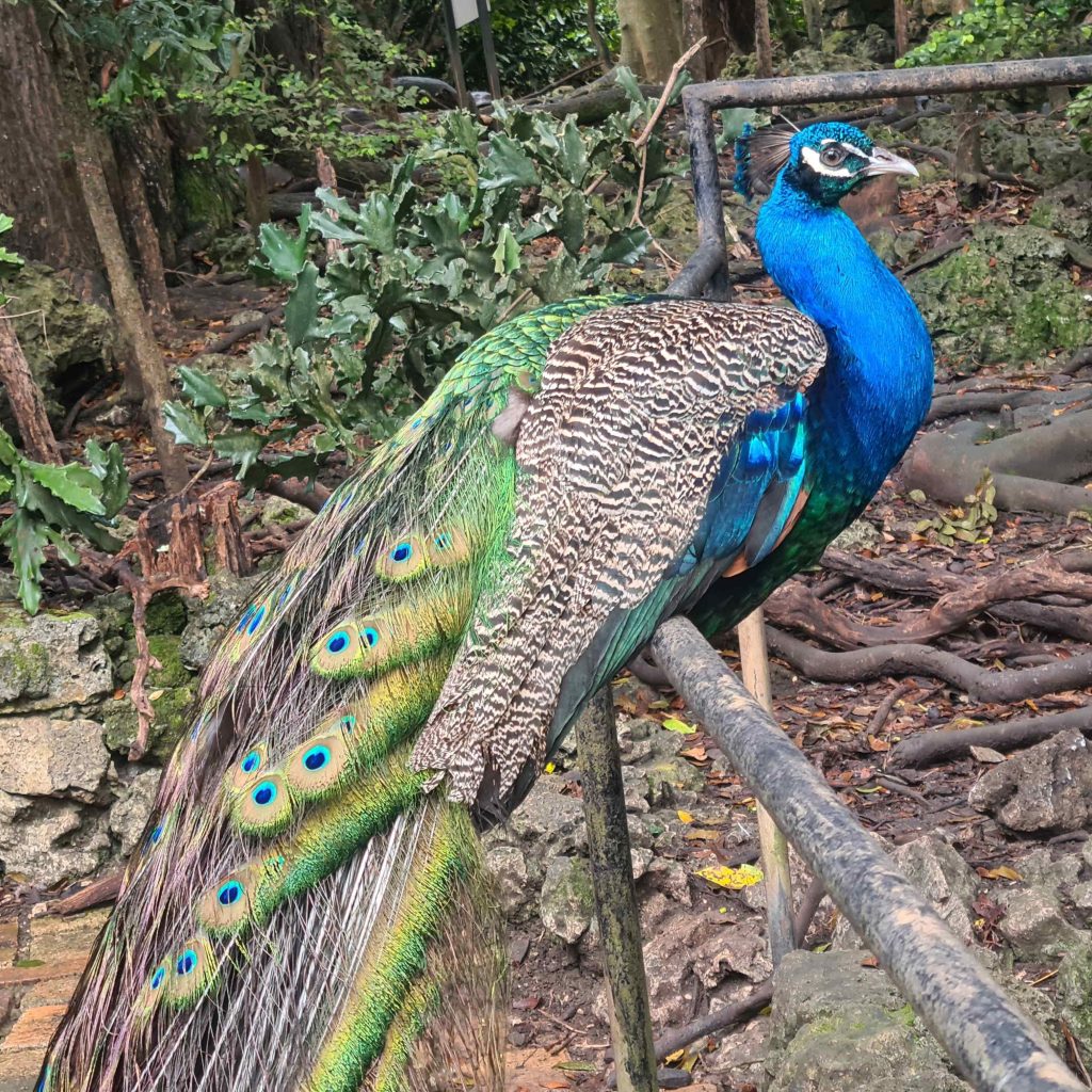 L’île regorge de jardins botaniques, nous visitons « Andromeda Botanic Garden » et le petit zoo de la « Wild Life Reserve » où se promènent tortues, volatiles divers, un beau paon et des singes en liberté ; et où on peut admirer des aras et des serpents. Nous longeons la côte Est où la houle de l’Atlantique vient déverser ses gros rouleaux sur de belles plages. Nous nous promenons dans « Farley Hill Nationnal Park », où se trouvent les ruines d’un grand manoir détruit par le feu et qui abrite de magnifiques arbres. Savez sous que le nom Barbade vient des arbres présentant des racines lianes qui retombent : les « arbres à barbe » ?