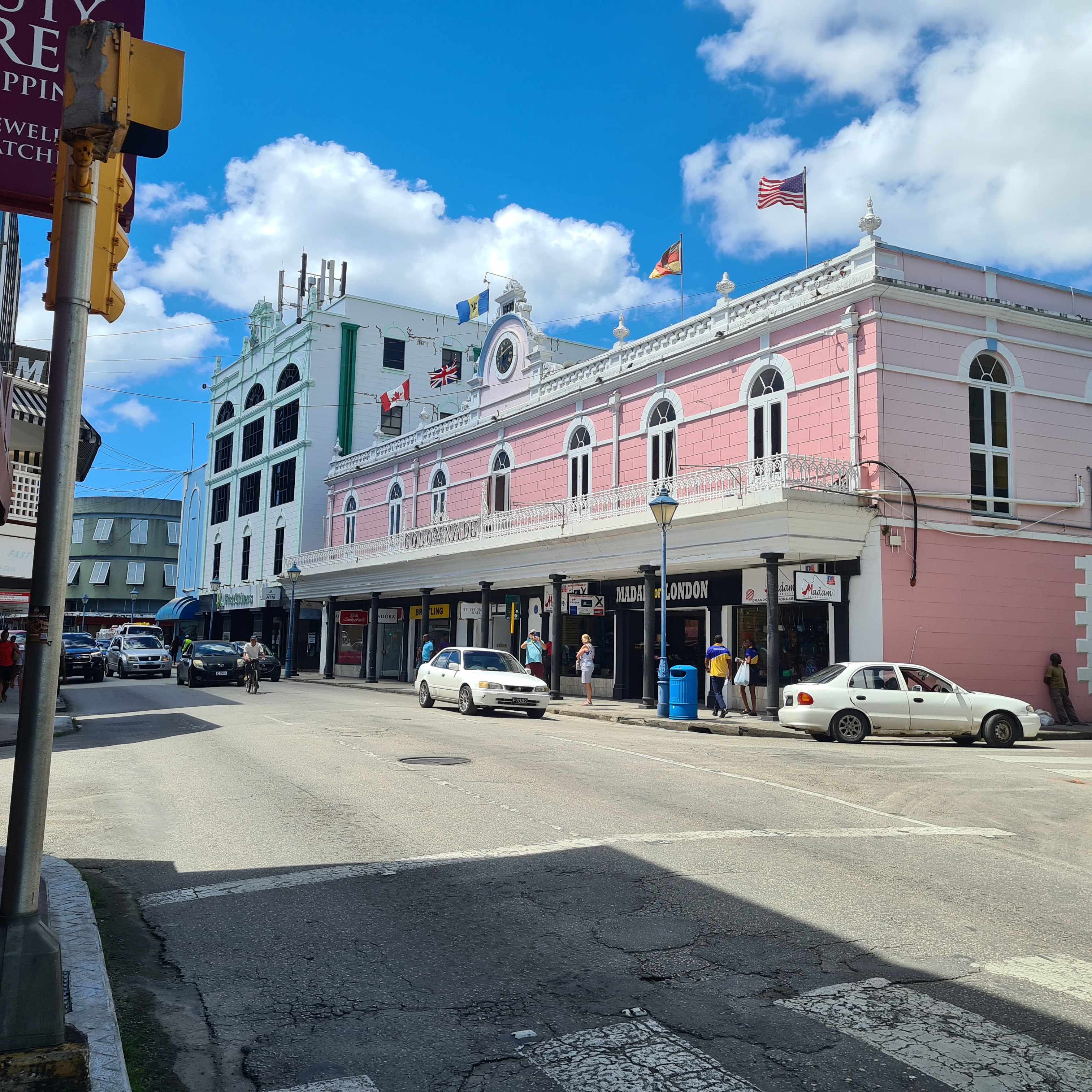 Nous ne pouvions pas manquer de visiter également Bridgetown la capitale. Cette petite ville portuaire est très commerçante. Outre une rue piétonne envahie d’étals divers et variés et de boutiques, on y trouve les enseignes des grandes marques présentes dans toutes les escales des bateaux de croisière, et Bridgetown en est une. De belles constructions de style colonial britannique sont en parfait état, d’autres moins. La ville est très animée et bruyante et les espaces de calme sont rares, autour de Careenage la petite rade qui abrite un port de plaisance pour bateaux à moteur de pêche sportive.