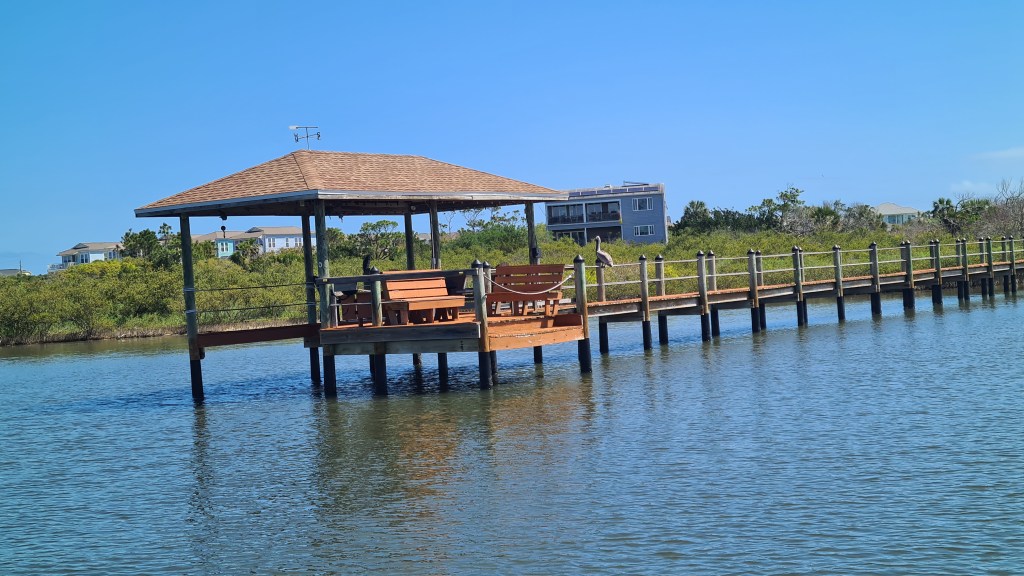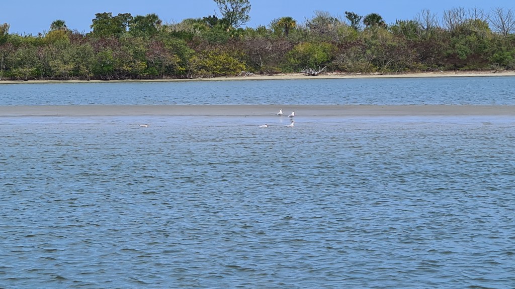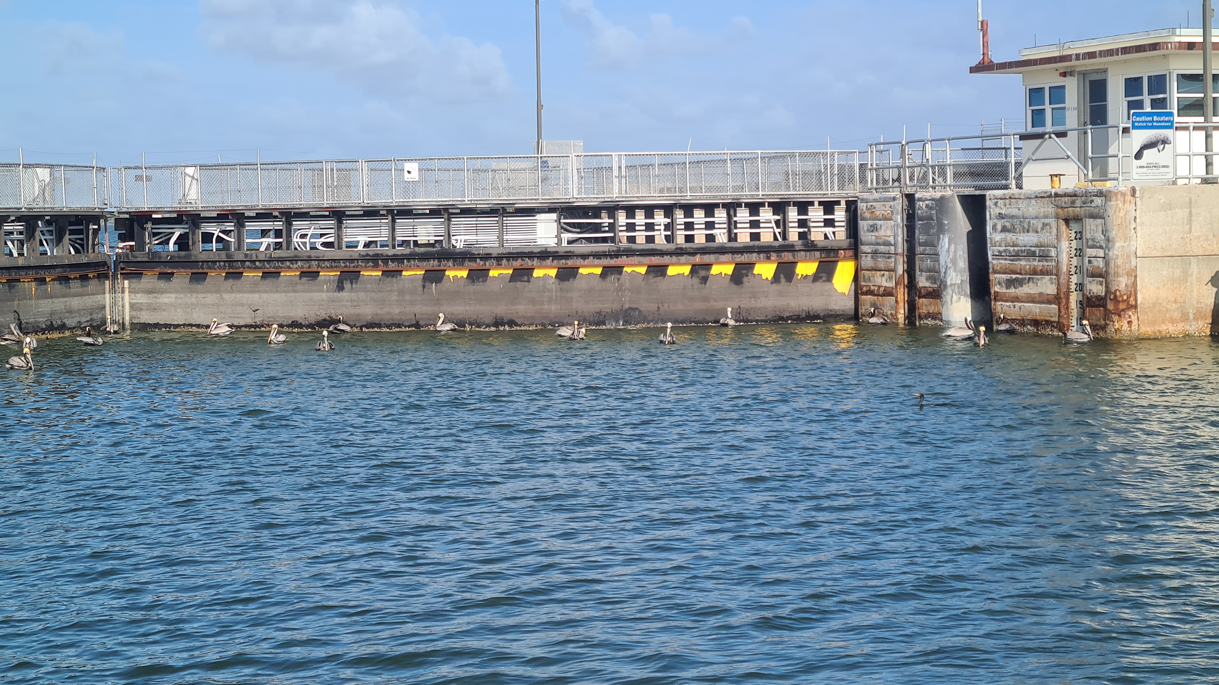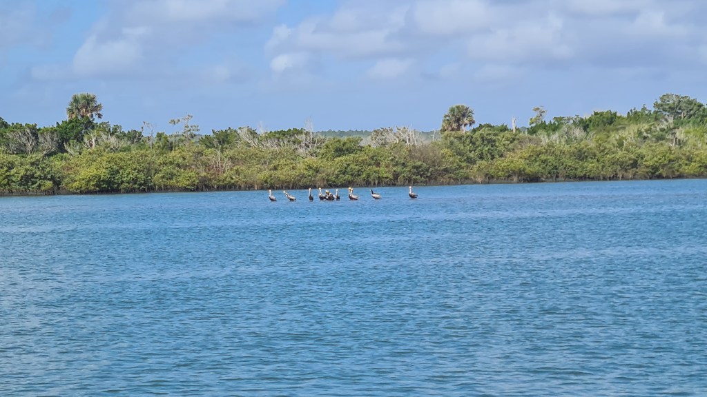 Le 29 mars nous quittons le Port Canaveral Yacht Club pour, tout d’abord, passer le « Port Canaveral Bridge » qui s’ouvre à notre demande, puis en traversant le « Barge Canal », nous empruntons l’écluse pour rejoindre l’ICW qui serpente dans d’Indian River. Les pélicans sont toujours là pour commenter les manœuvres d’accostage dans l’écluse.