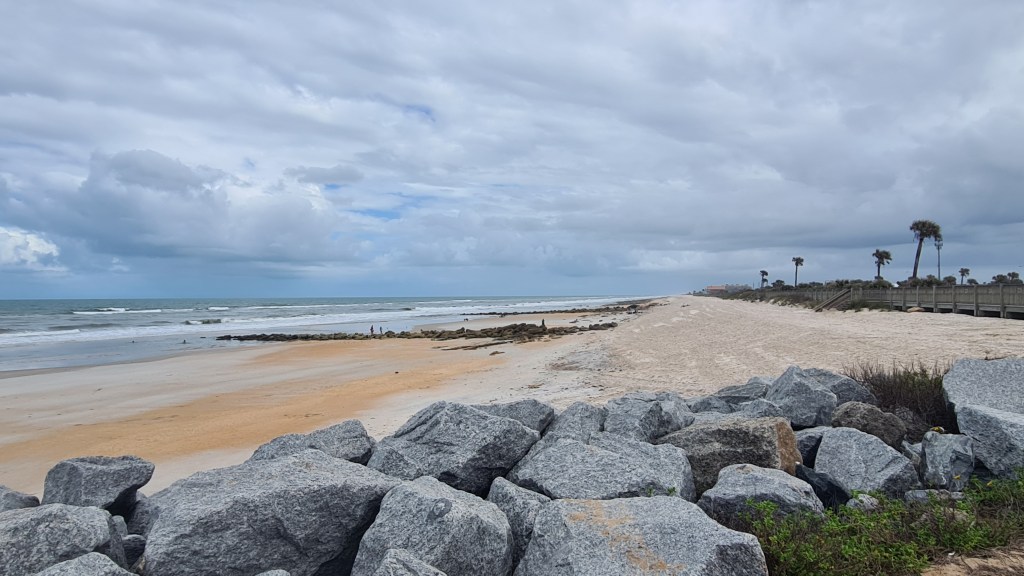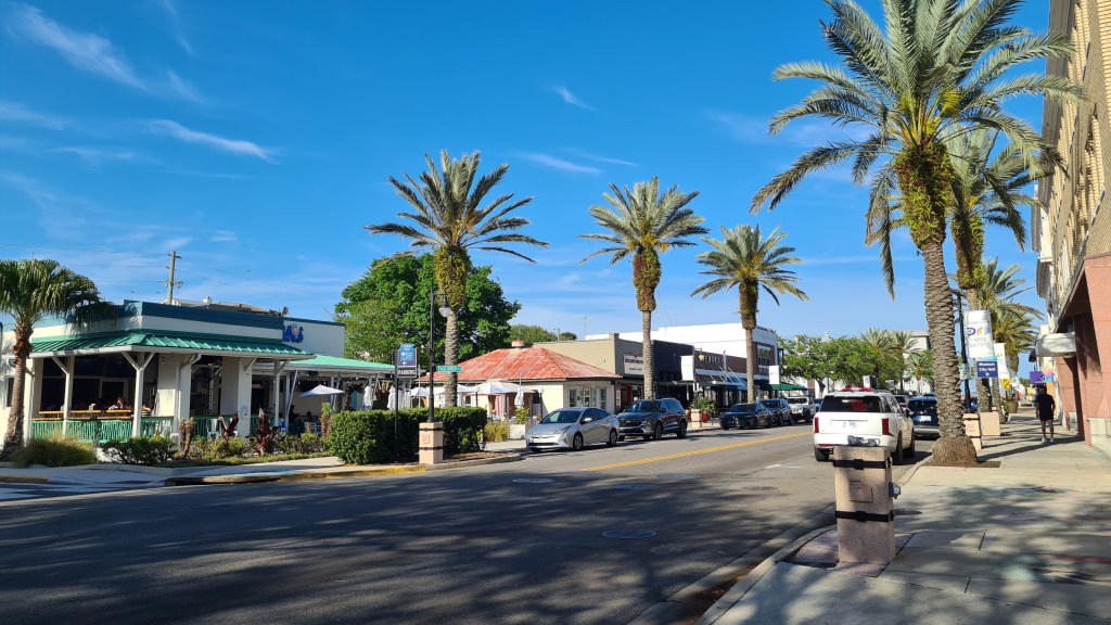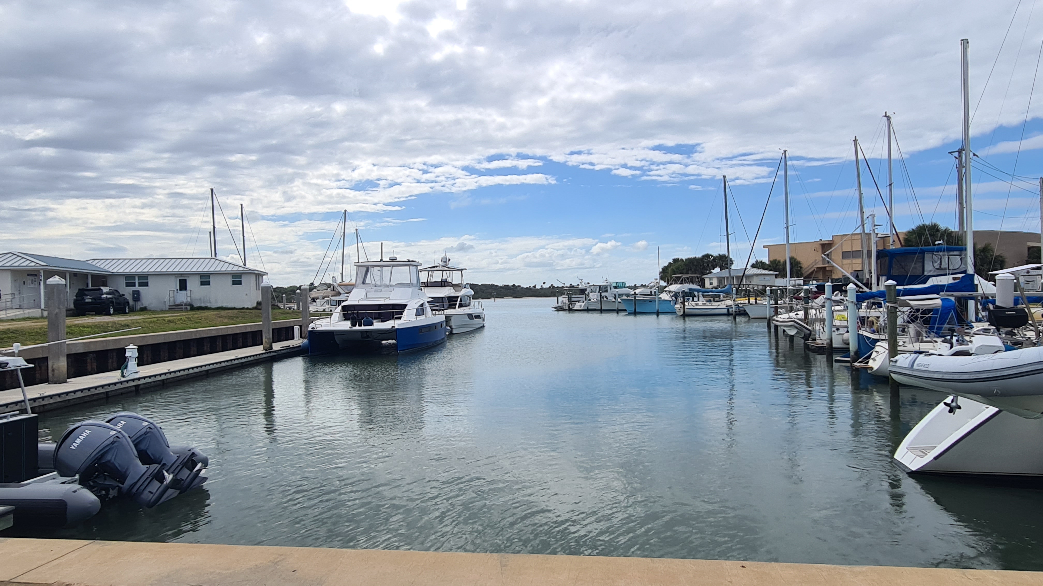 L’ICW serpente dans divers plans d’eau naturel : l’Indian River, le Mosquito Lagoon, l’Halifax River, la Matanzas River qui sont reliés par des canaux : le « Hauleover Canal », le « Ponce de Leon Cut », le « Fox Cut ». La profondeur y est très faible et il faut vraiment faire attention à bien rester dans le chenal si on ne veut pas voir la dérive se relever toute seule et la sécurité du safran sauter (histoire vécue quand le barreur relâche un peu son attention, eh, eh !). Nous devons trouver des zones un peu plus profondes pour mouiller notre ancre en dehors du chenal lors de nos arrêts. Les zones de mouillages sont bien documentées sur les guides et aménagées souvent près des villes. A New Smyrna Beach nous avons le courage de mettre l’annexe à l’eau et de débarquer au City Dock pour découvrir un peu la ville et manger une glace. Finalement toutes les villes de Floride se ressemblent un peu avec de larges avenues de magasins de babioles, souvenirs, des galeries d’art, quelques bars. C’est un peu mort à partir de 17 heures car tout est fermé, au contraire des grands centres commerciaux (qui sont situés en dehors des villes) ouverts tous les jours et très tard.