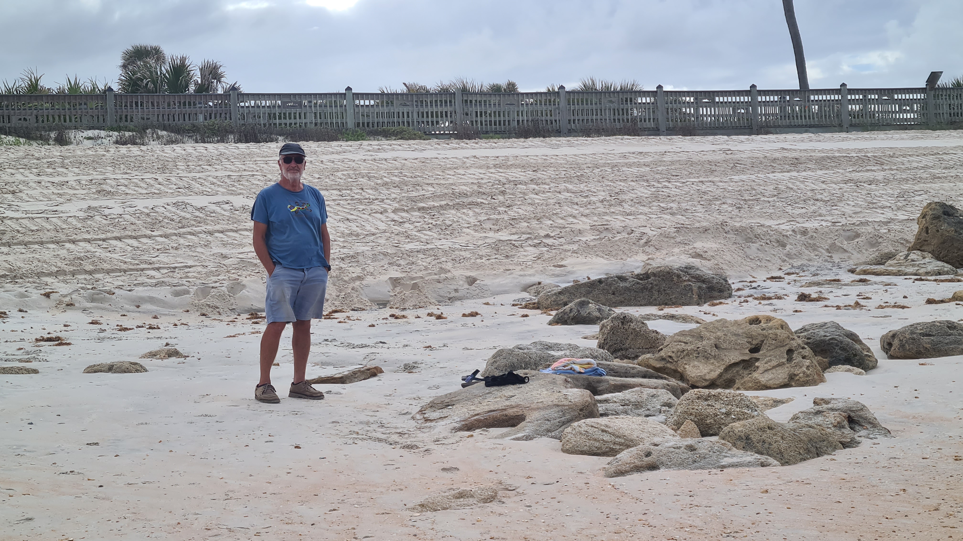 Le 2 avril nous traversons une zone plus sauvage très jolie et nous arrêtons à la petite Marineland Marina, qui pratique des prix normaux. Une langue de terre étroite sépare l’ICW de la mer à cet endroit et nous pouvons, le soir, aller nous promener sur la plage et tenter une baignade. Mais la mer se révèle bien trop dangereuse, je me contenterai de faire trempette.