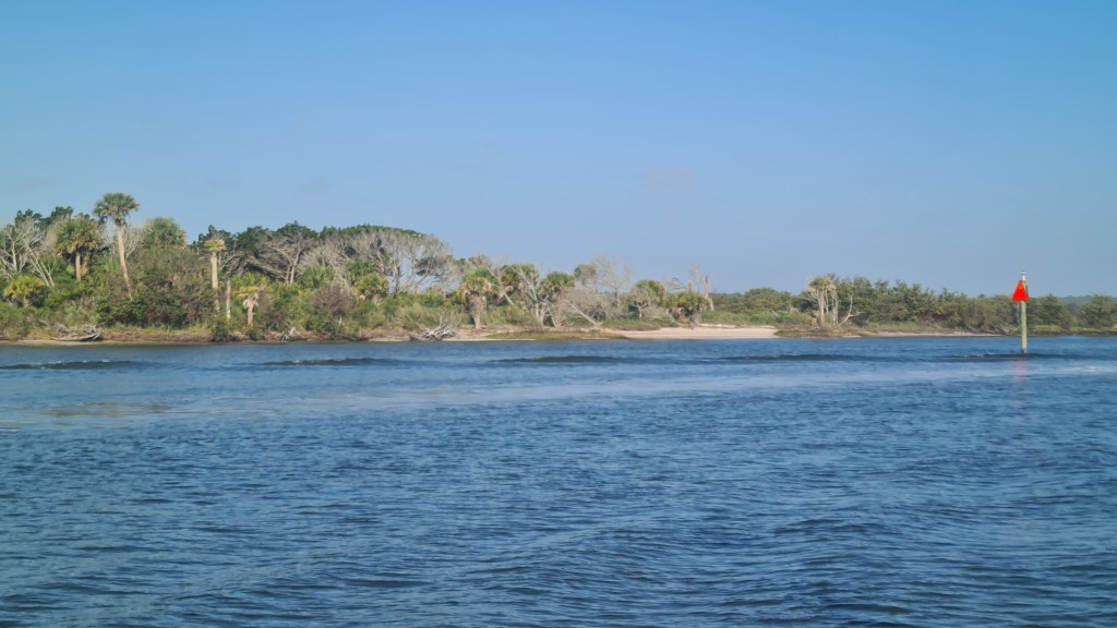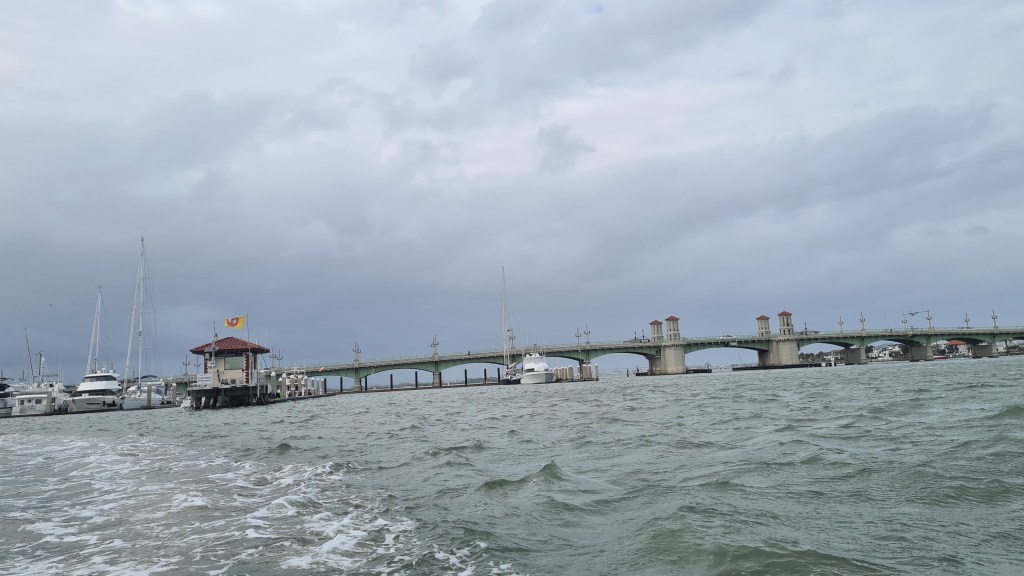 Le 3 avril nous parcourons notre dernier tronçon d’ICW avant d’arriver à Sainte-Augustine où nous avons réservé une place sur bouée à St Augustine Municipal Marina, la marina la plus centrale de cette jolie ville, située au pied du « Bridge of Lions ».