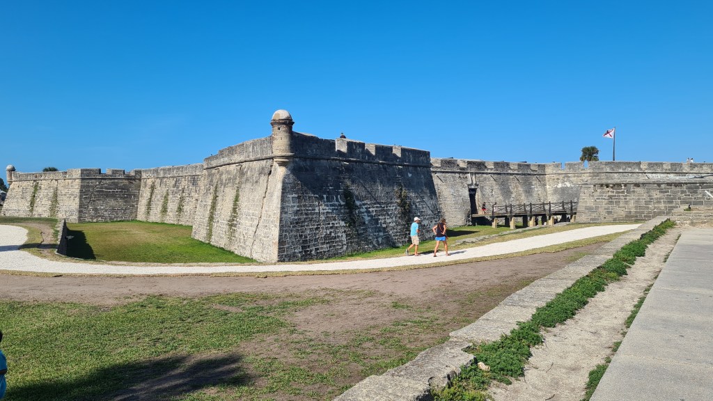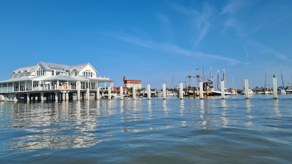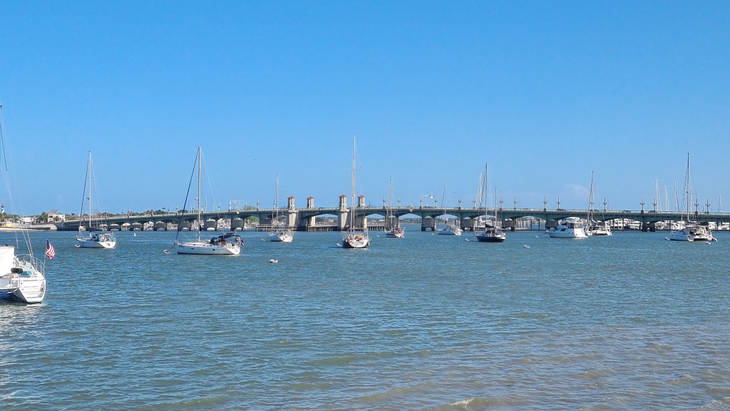 Saint-Augustine est une jolie ville historique, la plus vieille ville des USA fondée en 1565 par les premiers émigrants espagnols. La région a été disputée entre les Espagnols, les Français qui avaient accosté plus au Nord et ont été chassés ; et bien sûr les Anglais. Elle a également subit de nombreuses attaques de pirates. L’architecture de la ville a de fortes tendances hispaniques, les vieux quartiers sont préservés et de nombreux touristes la visitent chaque jour. La marina est située en plein centre-ville, ce qui nous donne accès aux nombreux, bars, restaurant, galeries d’art, magasins de souvenirs…