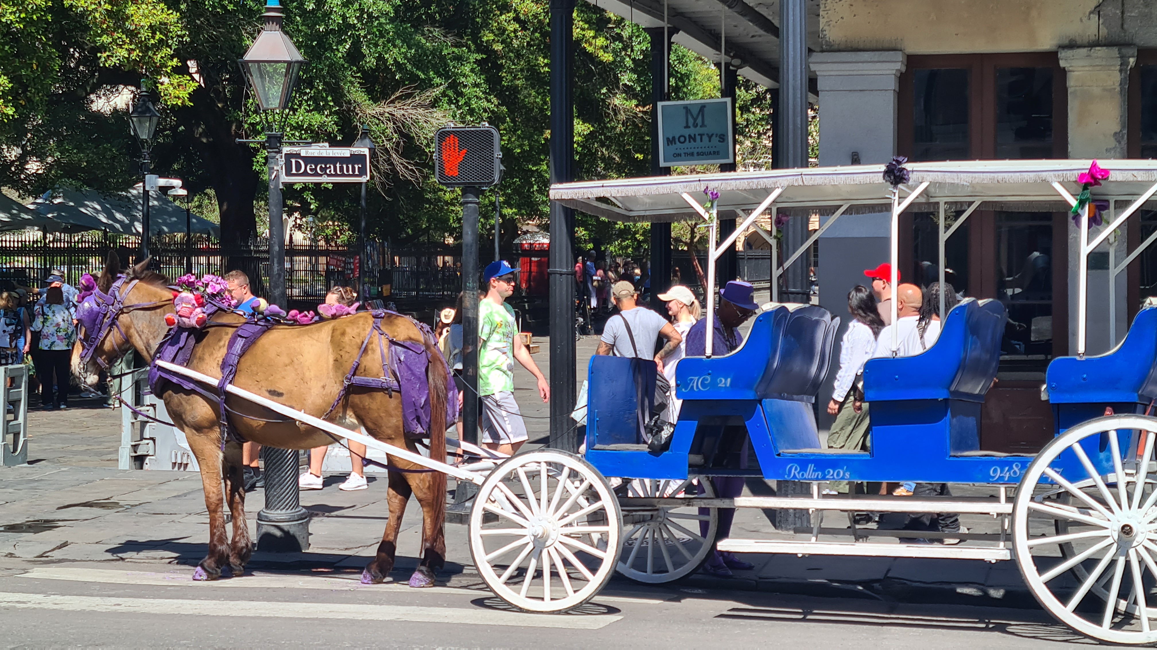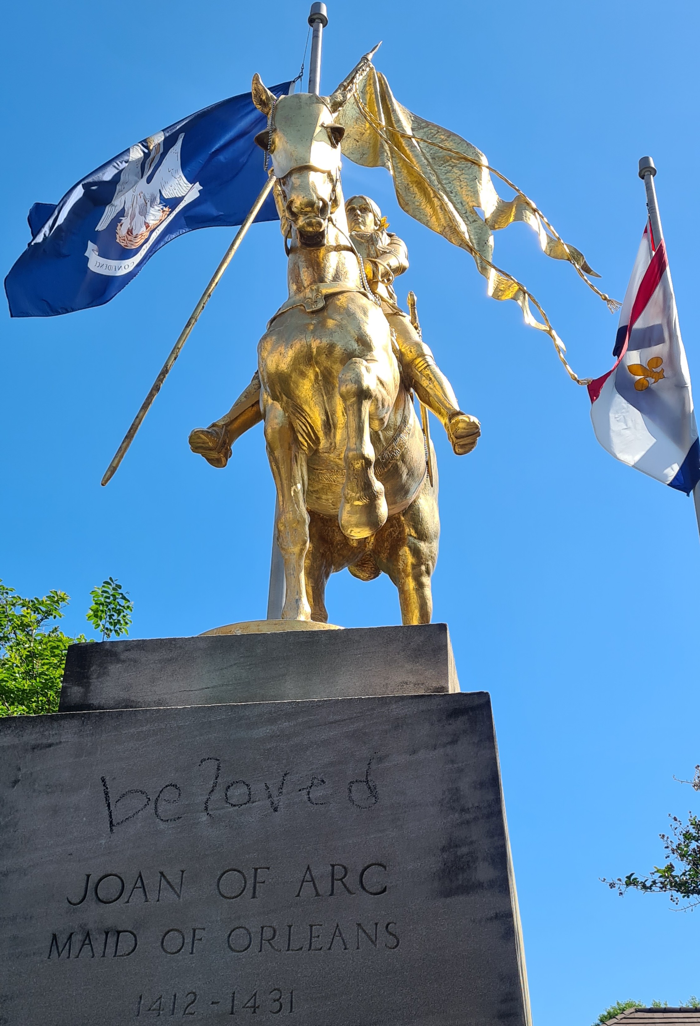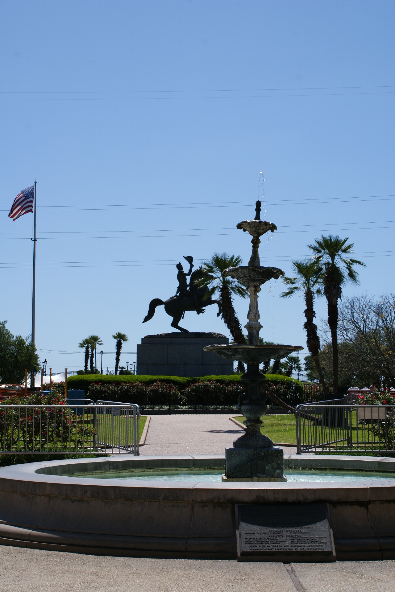 Nous découvrons une statue de Jeanne d’Arc, don de la ville d’Orléans en France et qui est fêtée ici simplement pour honorer la France, car elle n’a historiquement rien à voir avec cette ville, si ce n’est qu’elle a délivré Orléans. Nous prenons un café au renommé « Café du monde ». Nous arrivons au Jackson Square que nous ne pouvons malheureusement pas visiter car il est fermé, un festival de jazz du Vieux Carré a lieu dans deux jours et la ville est en pleine préparation.