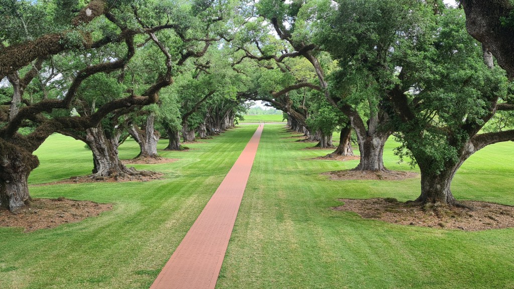 Le lendemain nous quittons New Orléans pour nous enfoncer un peu dans la Louisianne des plantations et visitons Oak Alley Plantation au bord du Mississippi. Dans ce magnifique jardin nous découvrons la belle demeure construite au temps de l’opulance de ces familles de cultivateurs de cotons, ou de canne à sucre ; gagnée sur la sueur des milliers d’esclaves qui y étaient exploités. Ces belles demeures et familles sont tombées en décadence avec la guerre civile et l’abolition de l’esclavage.