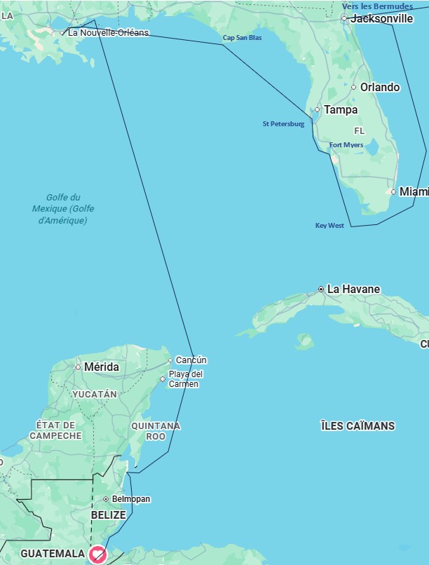 Nous espérons pouvoir reprendre la mer au maximum le 1er mars et nous diriger vers le Bélize où nous profiterons pendant une semaine du beau lagon. Ensuite si la météo le veut bien, nous nous dirigerons directement vers les Etats Unis. Nous pensons aborder dans un port proche de la Nouvelle-Orléans afin de faire nos formalités de façon plus aisée. En effet la remontée du Mississipi depuis le delta risque de prendre au moins deux jours.