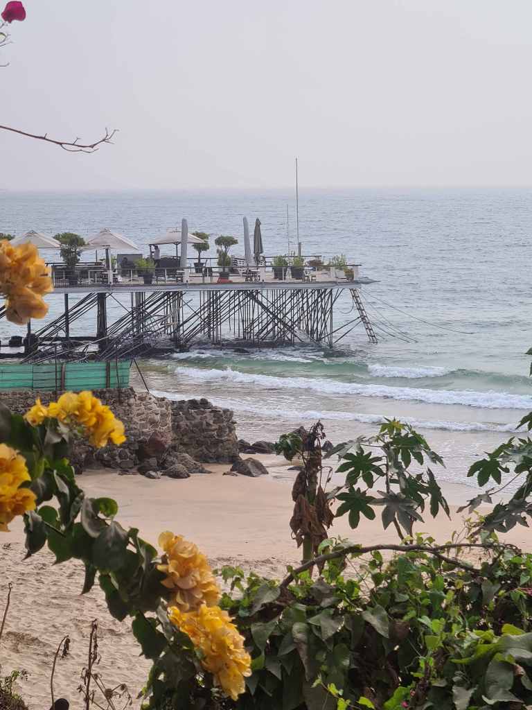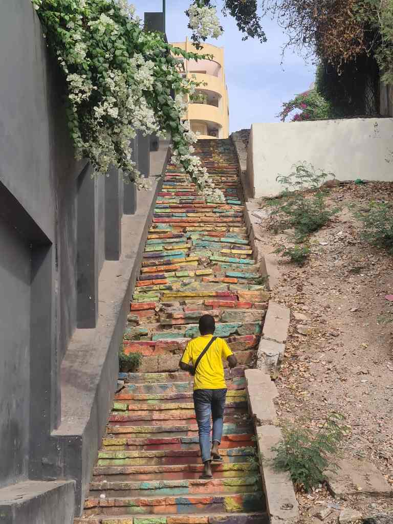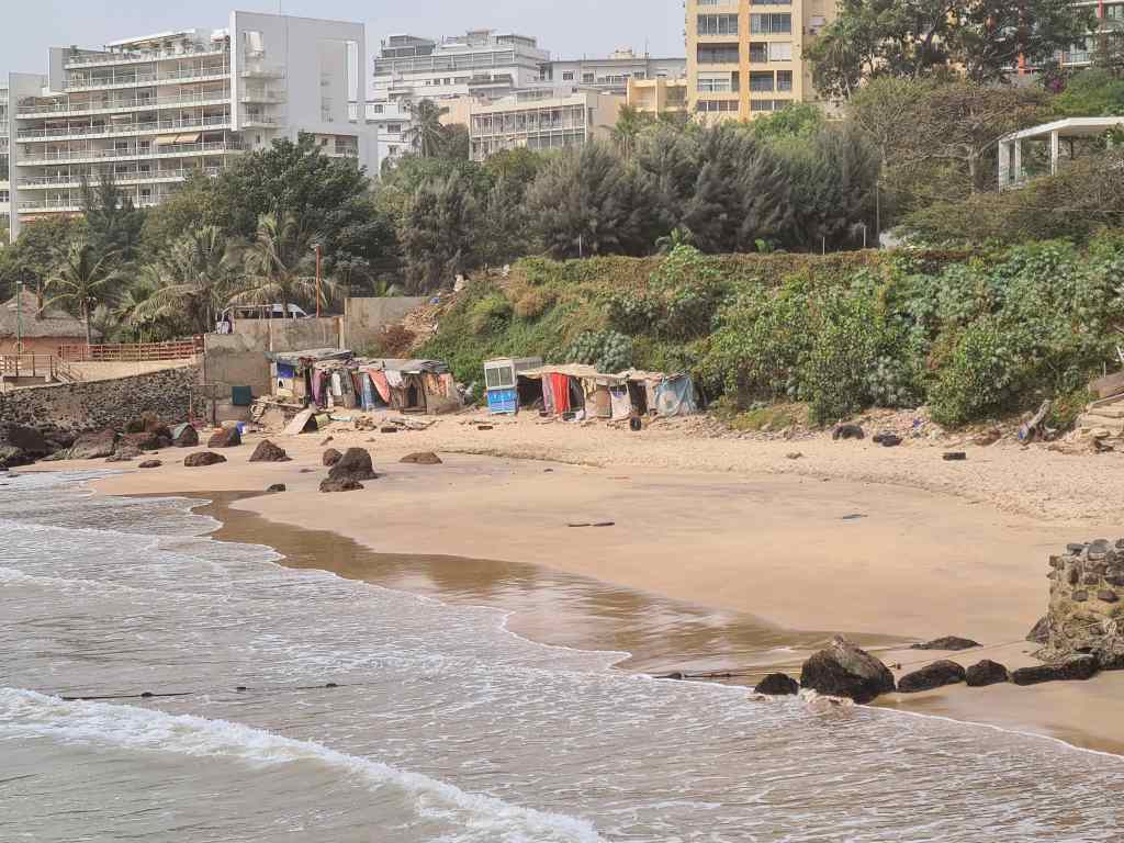 Nous marchons dans les rues et arrivons sur la Place de l’Indépendance. Une large esplanade avec de la verdure entourée d’immeuble plus modernes, tous les bâtiments ainsi que la chaussée, sont partout en très mauvais état. Nous allons marcher sur le Corniche qui longe la mer et trouvons « Le Lagoon », un bar que nous ont recommandé nos expatriés. Un endroit fréquenté par les VIP qui contraste terriblement avec tout ce qui l’entoure. Encore un vestige de la grandeur coloniale avec sa belle terrasse sur la mer avec sa plage privée, la seule propre de Dakar. Le tout jouxte une plage où logent des sans-abris. Ce sont les contrastes de l’Afrique !