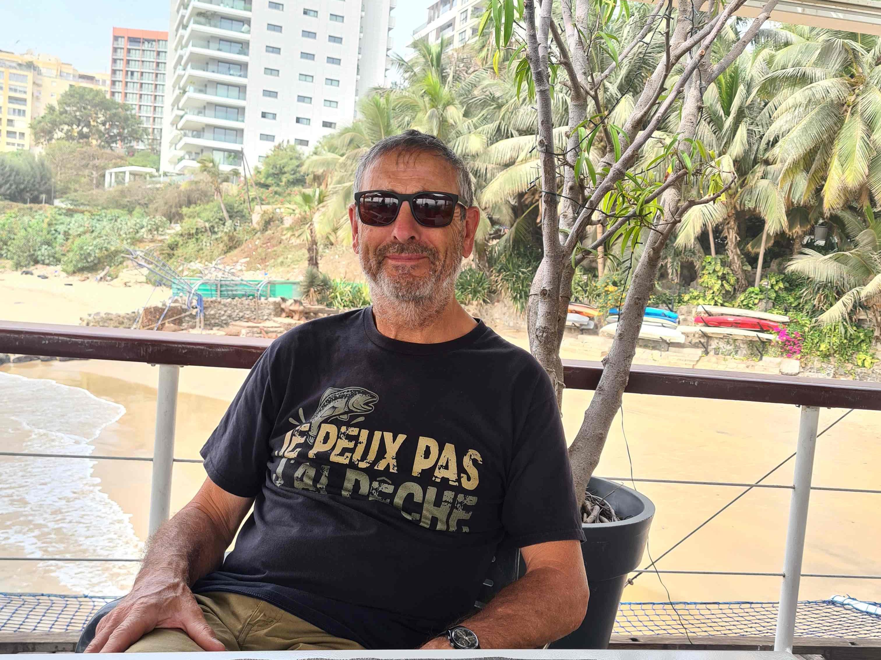 Le CVD (Club de Voile de Dakar) est « LE » point de chute des navigateurs de cette grande capitale africaine. C’est à vrai dire le seul endroit où il y a un quelconque accueil pour les voiliers. Un peu au Sud du port commercial, dans le fond de la Baie de Hann, on trouve un misérable ponton branlant avec des bateaux mouillés devant. Peu de temps après notre arrivée un employé du CVD nous rejoint en barque et nous propose de nous amener à terre, c’est Mustapha. Son job est de faire le taxi le week-end, pour débarquer et rembarquer les navigateurs. La première chose qui frappe en débarquant c’est l’odeur de vase pourrie de cette plage complètement dégradée par des immondices : c’est une vraie poubelle ! Nous devons traverser la plage pour rejoindre le club, bâtisse et ses dépendances qui ont eu leur heure de gloire pendant l’époque coloniale. C’est à peu près propre, si ce n’est les épaves de bateaux, canots, moteurs qui sont entreposés sur le terrain. C’est le point de chute des baroudeurs (à voile ou en camping-car) du coin.