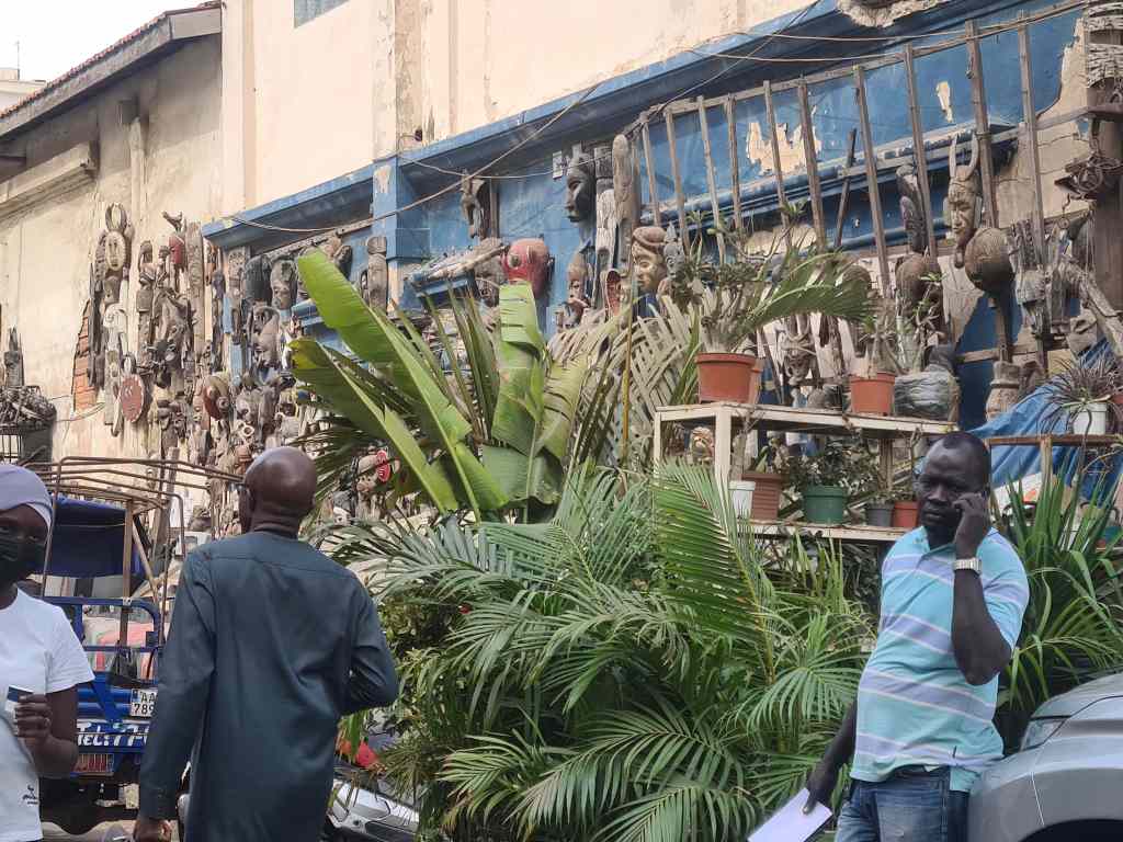 Notre première journée consacrée presque exclusivement aux formalités d’entrée dans le pays est une bonne mise en conditions. Le CVD est situé à la limite d’un quartier « chic » et d’un village de pêcheur. Quand on sort dans la rue à peine bitumée, on trouve des étals en tout genre, l’étal de Mama couture avec ses vêtements et tissus africains, des bouisbouis où les femmes cuisinent à même le sol ou vendent des fruits, des « artisans » qui fabriquent des objets en soudant ; des genres de menuisiers travaillent le bois, tous avec des pièces récupérées et quasiment sur la rue. Au coin de la rue apparemment c’est l’endroit où on trouve un taxi. Et effectivement un véhicule noir et jaune complétement délabré se présente et accepte de nous emmener au centre-ville au poste de police.