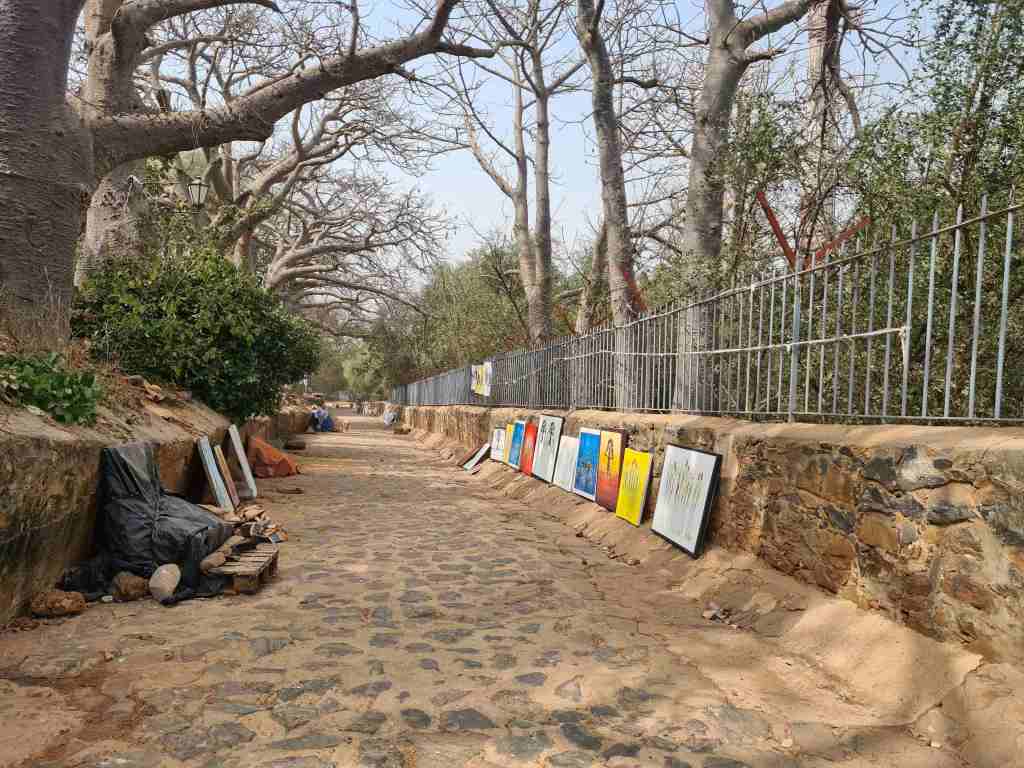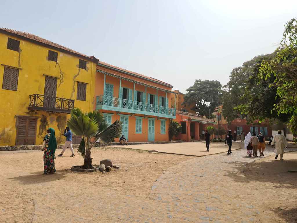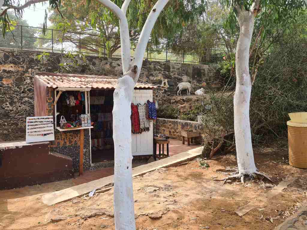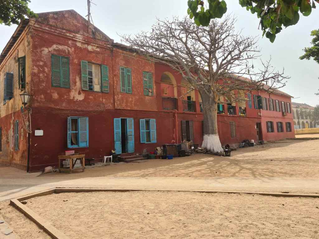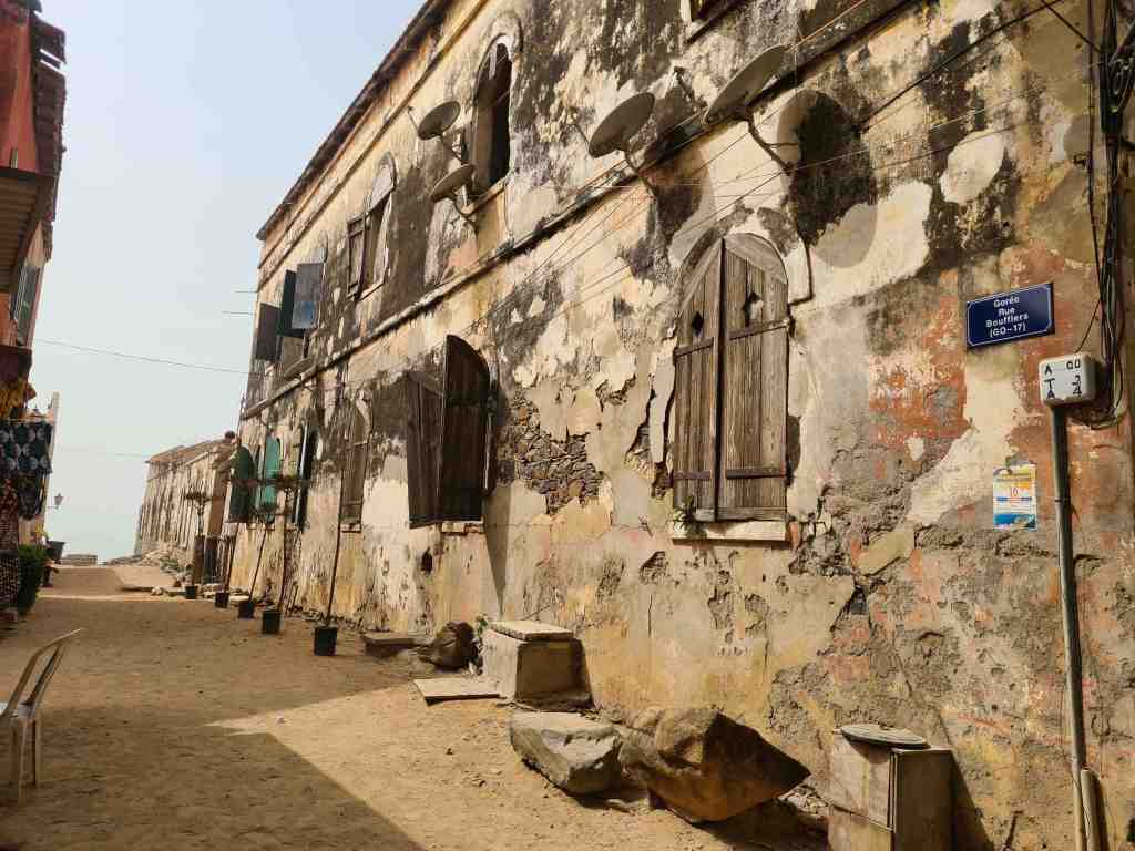 Notre seconde journée de visite de Dakar nous conduit au Musée des Civilisations Noires, un immense bâtiment moderne qui regroupe des expositions très scientifiques de l’origine de l’humanité jusqu’à l’art africain en passant par les diverses religions, la place des femmes en Afrique etc… C’est très intéressant, mais il faudrait y passer une semaine pour tout voir ! Nous avons tout juste le temps d’attraper le bateau pour l’Île de Gorée en sortant du Musée. Cette île très recherchée et résidentielle lors de l’époque coloniale est maintenant, parait il, un lieu de villégiature pour les Dakarois aisés. En dehors de la zone du débarcadère où se trouvent les restaurants, les étals touristiques, et quelques villas, le reste de l’île est une vaste poubelle où les gens vivent avec leurs chèvres dans des genres de bidonvilles dans une grande misère. Les anciennes maisons coloniales sont dans un état de délabrement avancé, et comme partout des détritus jonchent le sol. Au bout de l’île des artistes exposent dans la rue des longueurs de jolis tableaux destinés aux touristes. En deux jours nous avons notre dose de Dakar, de ces allers-retours interminables dans la poussière en taxi pour ne visiter à peu près que des détritus et des ruines.