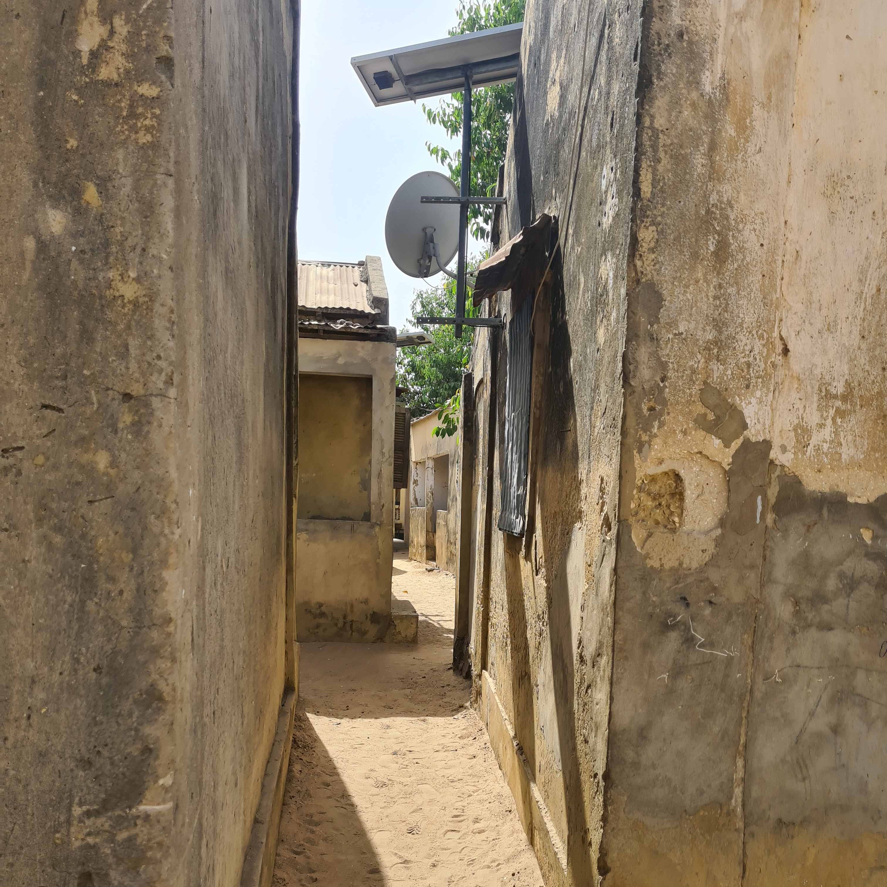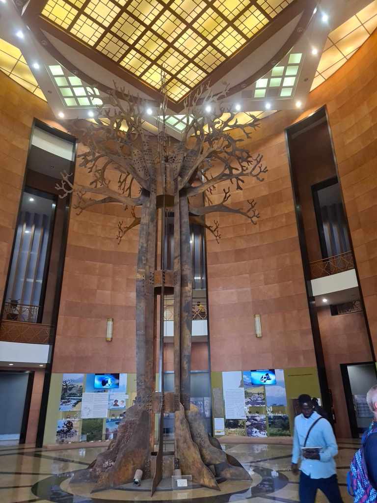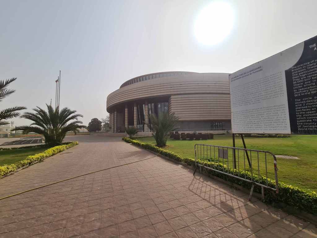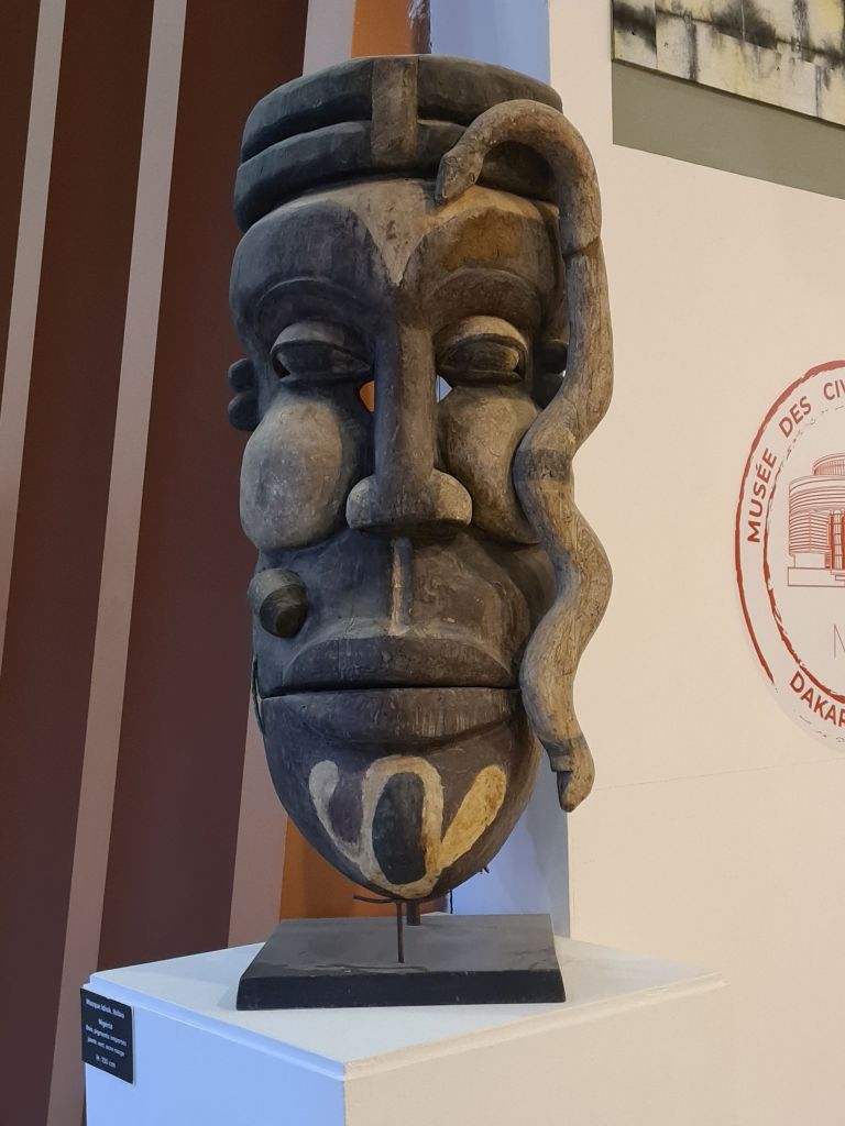 Notre seconde journée de visite de Dakar nous conduit au Musée des Civilisations Noires, un immense bâtiment moderne qui regroupe des expositions très scientifiques de l’origine de l’humanité jusqu’à l’art africain en passant par les diverses religions, la place des femmes en Afrique etc… C’est très intéressant, mais il faudrait y passer une semaine pour tout voir ! Nous avons tout juste le temps d’attraper le bateau pour l’Île de Gorée en sortant du Musée. Cette île très recherchée et résidentielle lors de l’époque coloniale est maintenant, parait il, un lieu de villégiature pour les Dakarois aisés. En dehors de la zone du débarcadère où se trouvent les restaurants, les étals touristiques, et quelques villas, le reste de l’île est une vaste poubelle où les gens vivent avec leurs chèvres dans des genres de bidonvilles dans une grande misère. Les anciennes maisons coloniales sont dans un état de délabrement avancé, et comme partout des détritus jonchent le sol. Au bout de l’île des artistes exposent dans la rue des longueurs de jolis tableaux destinés aux touristes. En deux jours nous avons notre dose de Dakar, de ces allers-retours interminables dans la poussière en taxi pour ne visiter à peu près que des détritus et des ruines.