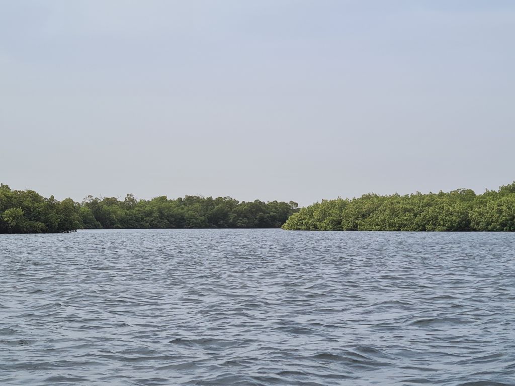 La rivière Saloum est très large et forme un véritable delta. Le relief est complètement plat, les rives sont bordées de mangrove qui alterne avec de petites plages avec assez peu de végétation, des bois d’eucalyptus et quelques palmiers. Nous remontons la rivière sur 5 milles pour entrer dans un bolong qui serpente dans la mangrove. Nous mouillons notre ancre à l’entrée d’un petit bras de rivière par lequel nous rejoignons le village de Moundé.