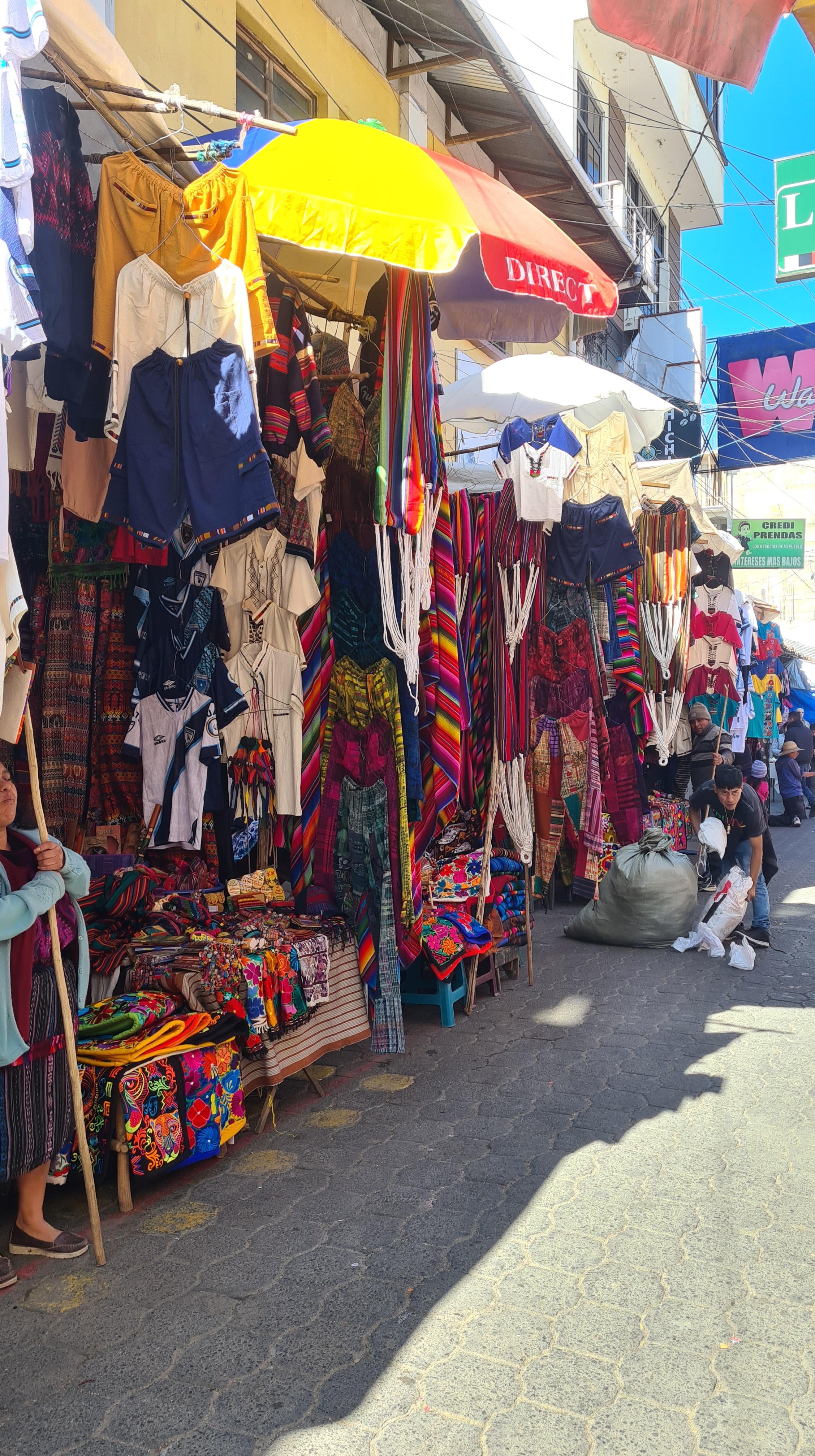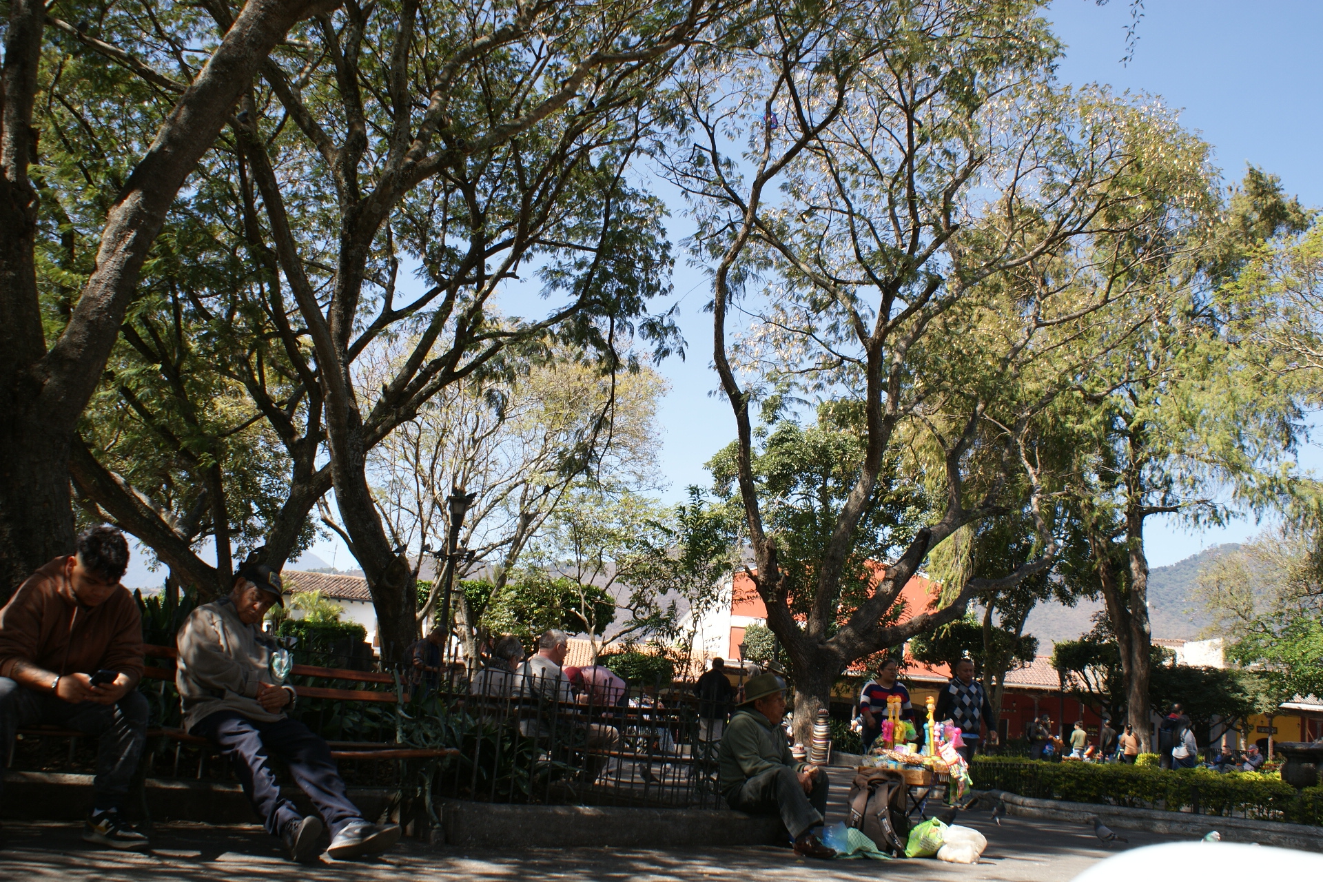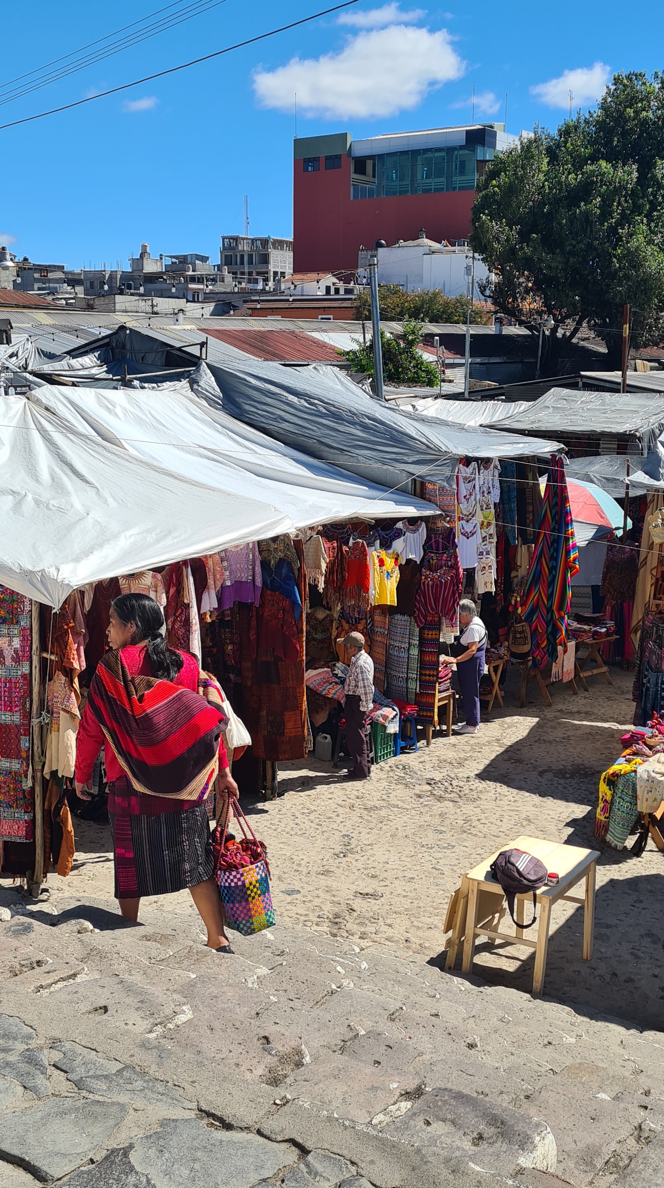 Nous passons trois nuits à Panajachel. Le premier jour nous reprenons un bus qui nous amène le matin au marché de Chichicastenango, réputé pour ses couleurs. Nous sommes un peu déçus, le marché s’étend dans un village qui n’a rien de charmant si tant est que les villages soient charmants ici ! Il est très étendu et n’attend que les touristes. Hormis une petite place avec des peintures murales et des jeux pour les enfants aux couleurs locales, le site ne présente pas vraiment d’intérêt. Certes les couleurs des étoffes et des vêtements sont belles comme partout ici, mais nous regrettons un peu d’avoir fait trois heures de bus pour cela. Heureusement le jardin calme de l’hôtel et la jolie plage de Panajachel nous permettent de nous reposer un peu.