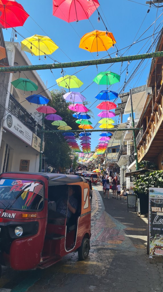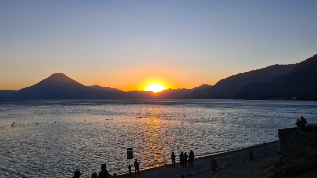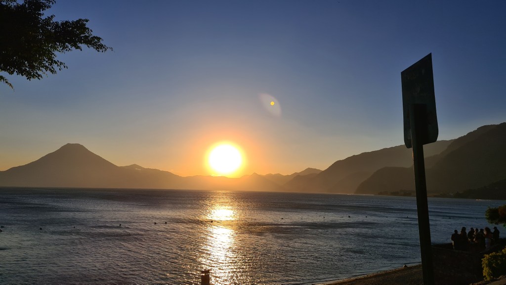 Nous sommes récompensés de ces quatre heures un peu olé olé. Notre hôtel est situé dans un endroit calme. La ville, pas très grande, est certes très touristique ; elle s’étale autour d’une grande rue principale bordée de restaurants de bars et d’échoppes touristiques, et débouche sur une plage où l’on descend le soir, observer le coucher de soleil derrière les volcans qui entourent le lac.