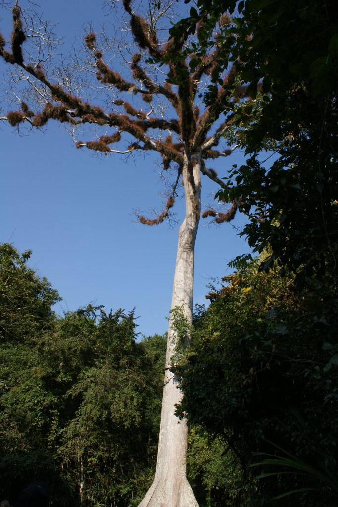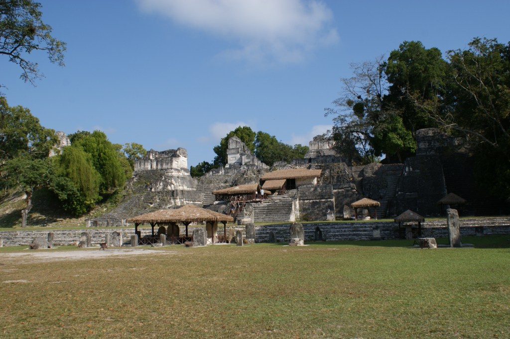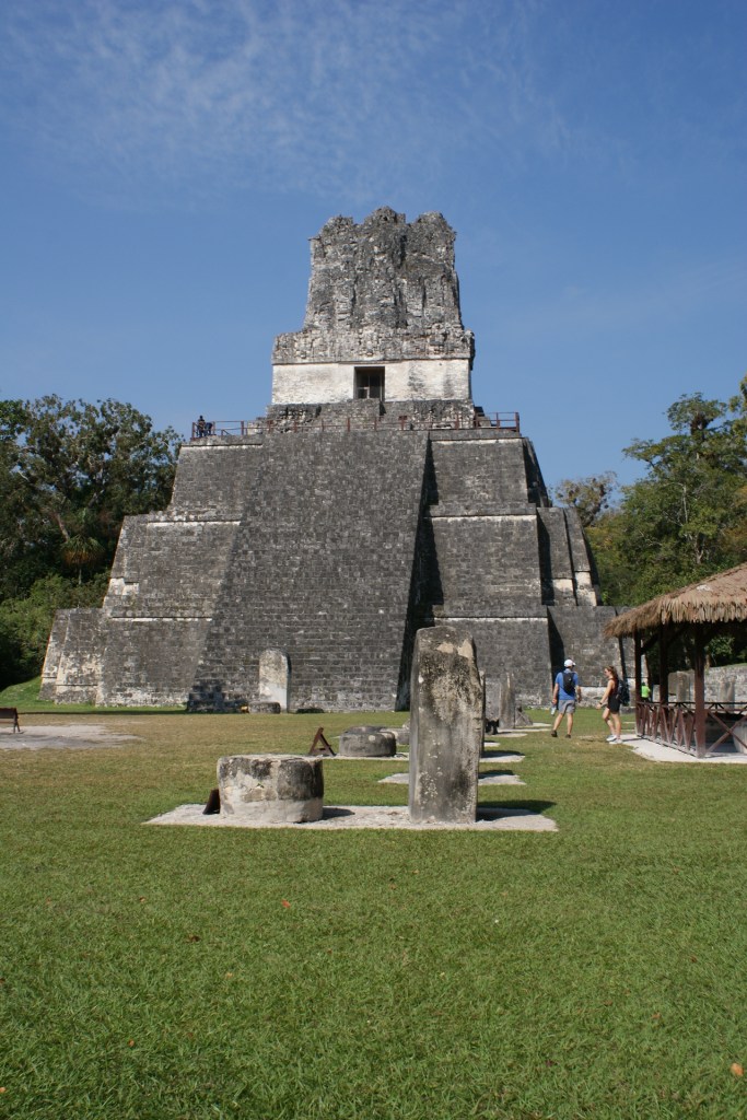 Un départ en bus à 6 heures du matin de Florès nous mène en 1h30 à Tikal. Ce grand site archéologique Maya se situe en pleine forêt tropicale au milieu d’une jungle préservées et peuplées d’animaux sauvages. Les visites matinales sont préférables pour avoir la chance d’apercevoir des animaux : singes hurleurs, singes araignée, toucans, aras, cougars, jaguars, serpents divers et variés, tarentules… Notre guide très sympathique connait aussi bien la nature que l’histoire de ses ancêtres mayas. Il nous permet d’apercevoir des singes, des oiseaux de toutes sortes. Nous n’aurons pas la chance de voir de félins, ni de serpents (ces derniers ne me manqueront pas !). Nous parcourons pendant quatre heures le site très étendu, nous grimpons en haut de certains temples observer la canopée. Notre guide nous explique la disposition des temples guidée par la hiérarchie et les besoins de la religion ainsi que leur implantation étudiée par rapport au soleil, qui montre les connaissances avancées en astronomie de ces civilisations vieilles de plus de 2000 ans. Nous apprenons avec surprise que cette civilisation s’est éteinte d’elle-même, rongée par les guerres internes et l’extinction des familles royales. Les conquistadors n’y sont pour rien dans ce cas !